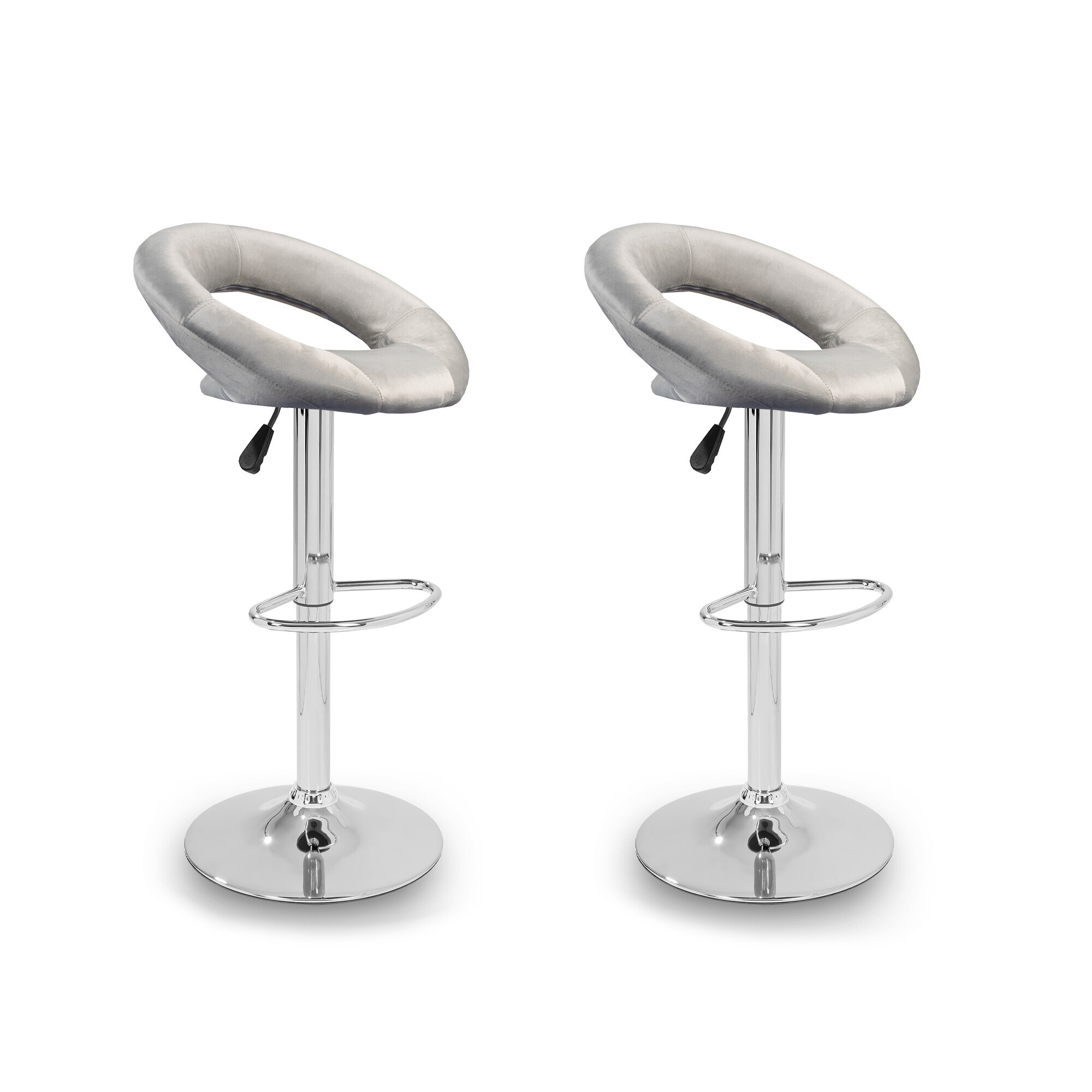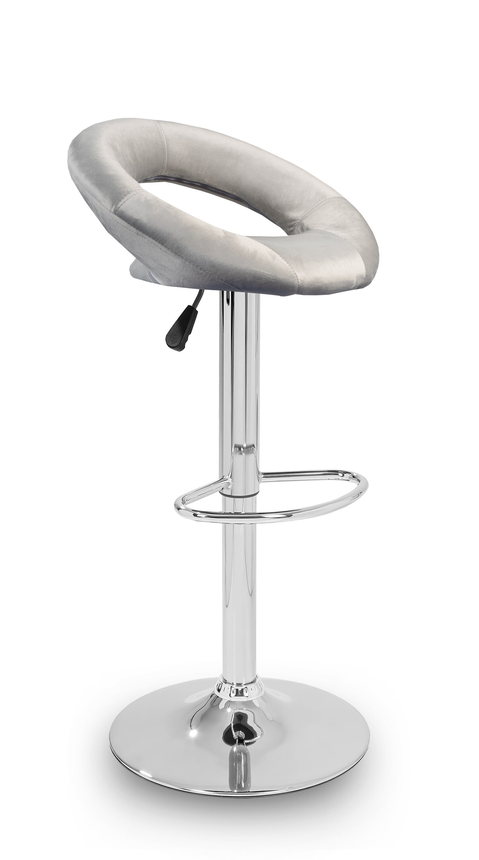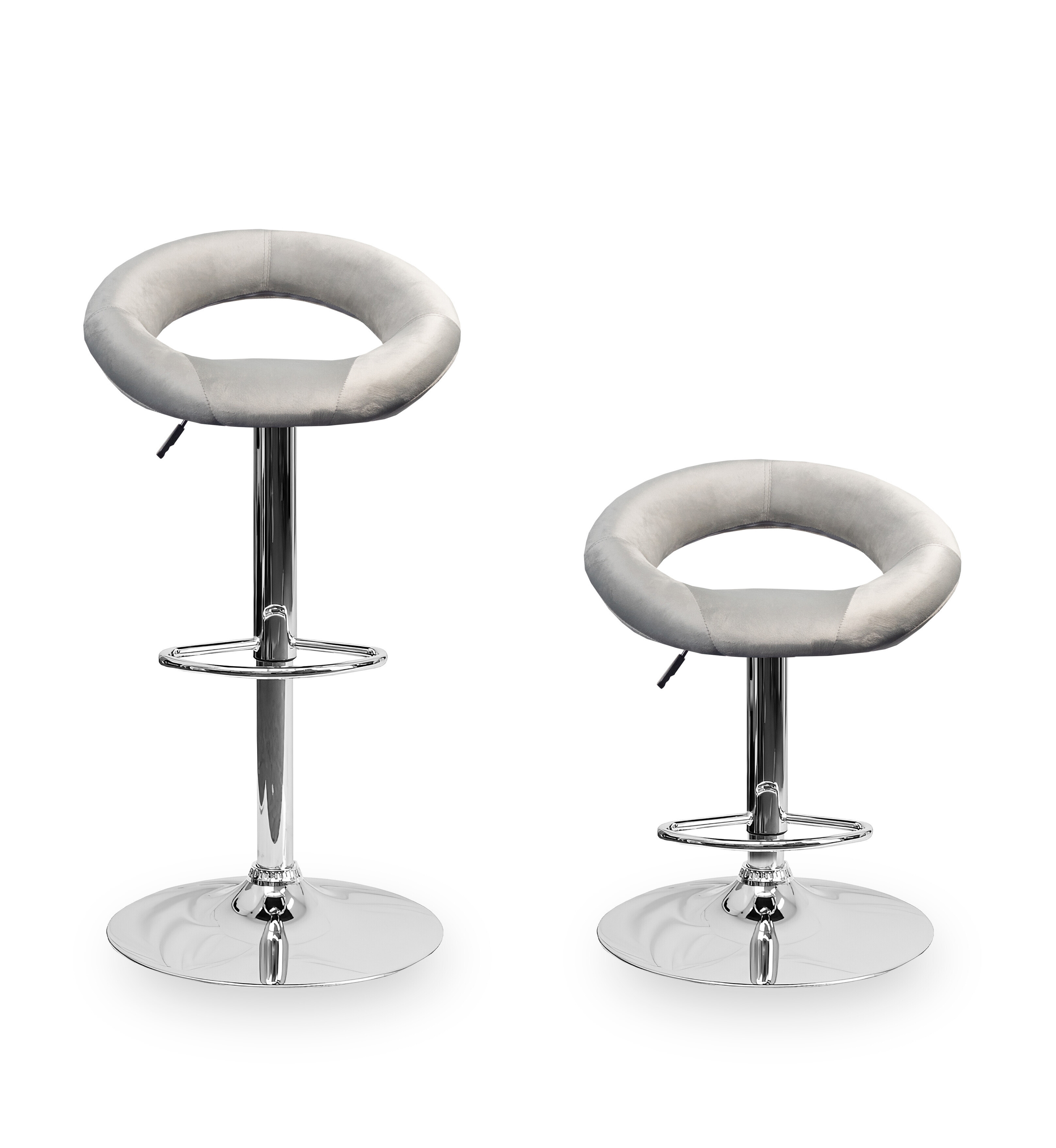 Židle vyniká kruhovými tvary, kruhový sedák spojený s kruhovým opěrákem. Povrch sedací části barové židle je ze sametu.