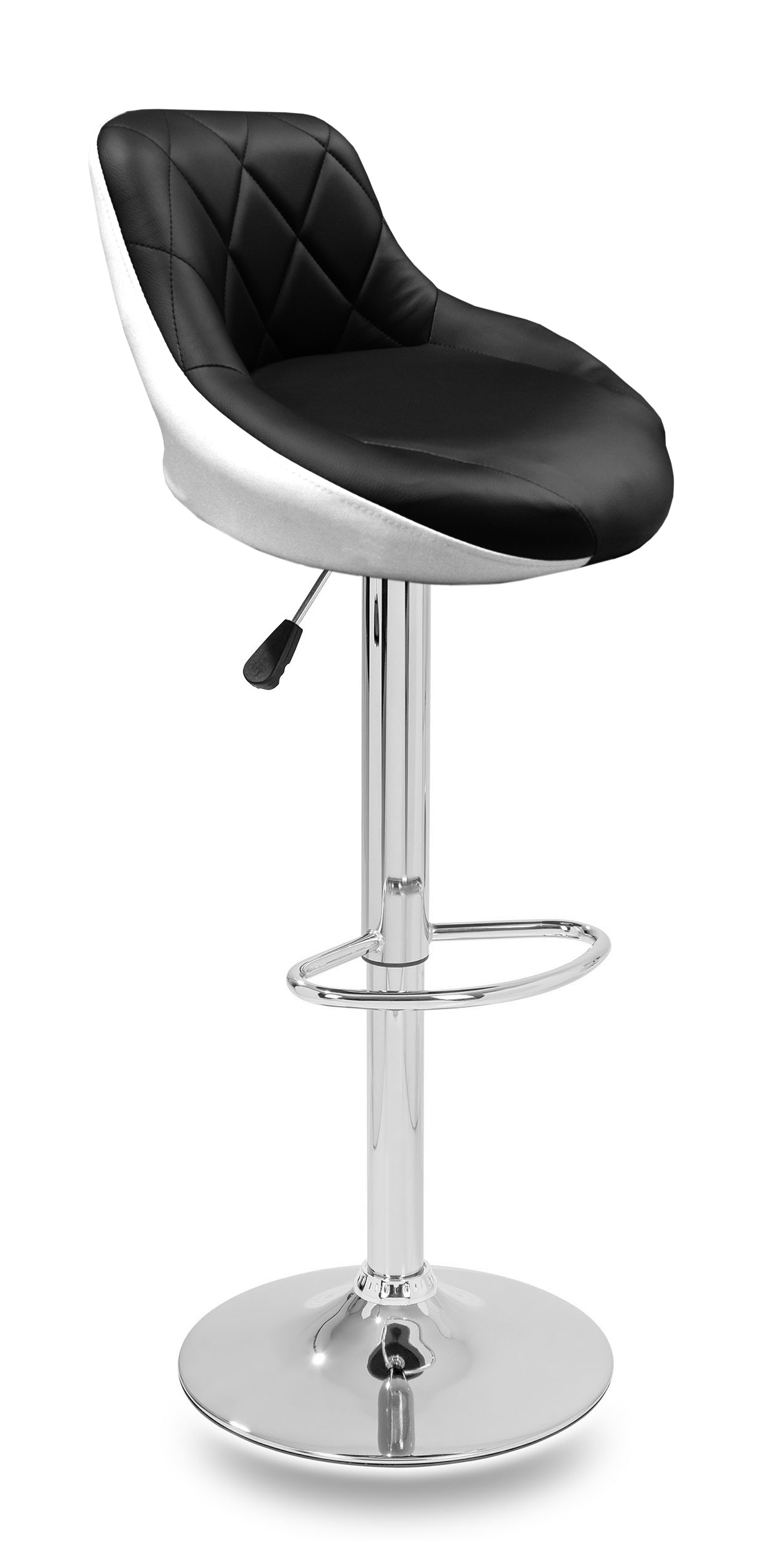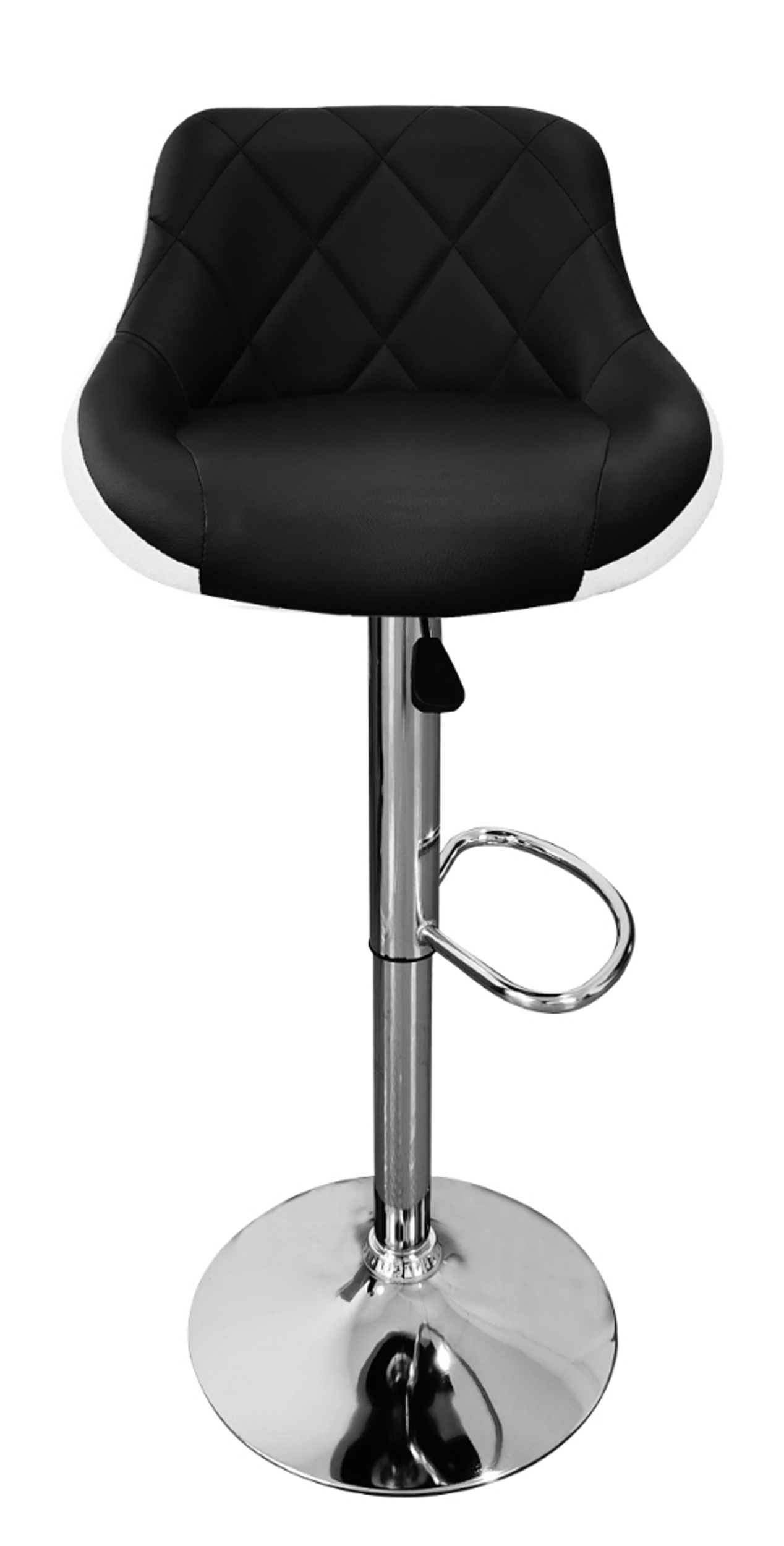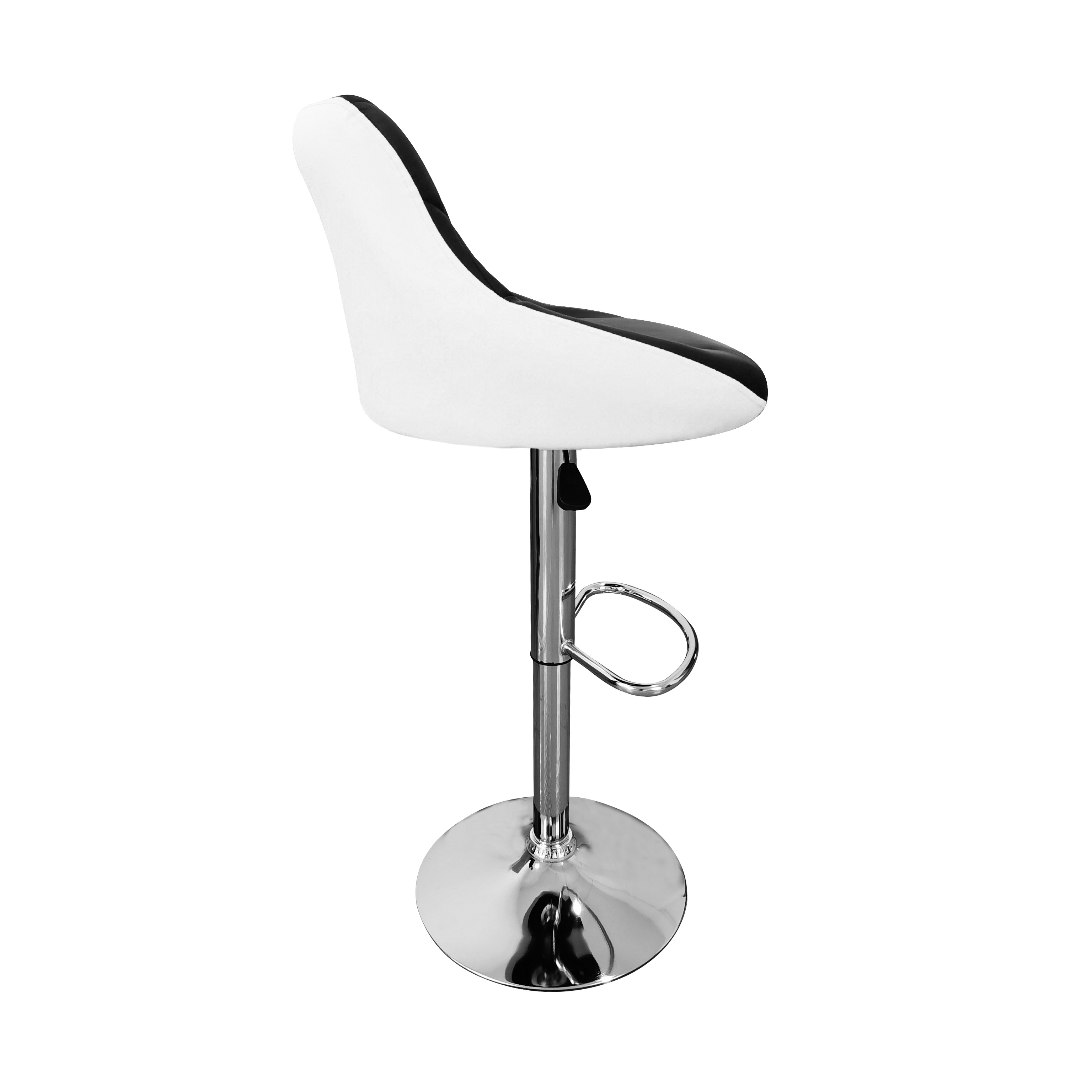 Židle má praktickou opěrku na nohy z pochromovaného kovu. Kruhová podnož a centrální noha jsou z chromu v lesku.