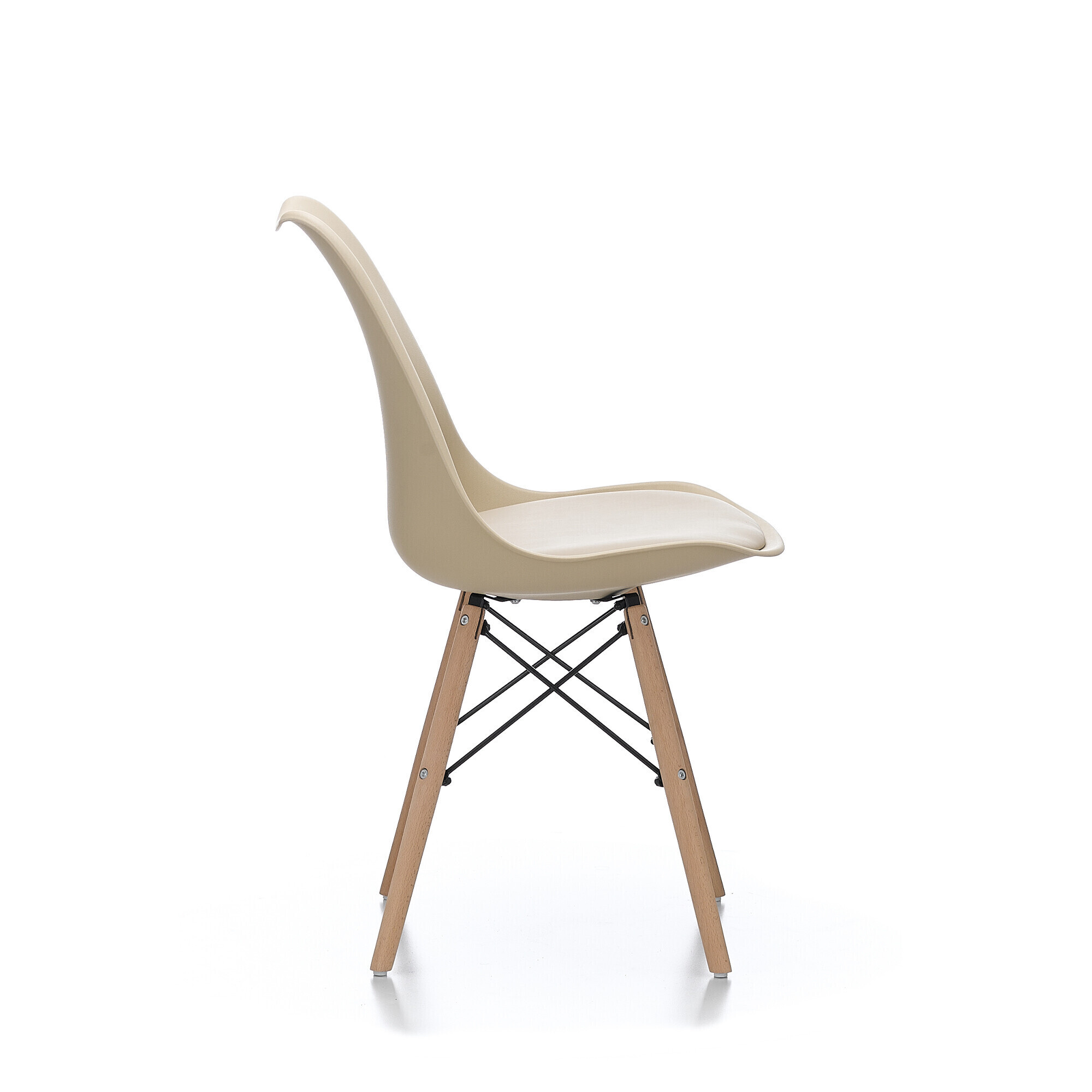 Židle je vyrobena z kvalitního a odolného polypropylenu s polštářem v potahu umělé kůže v kombinaci podnože z bukového dřeva.