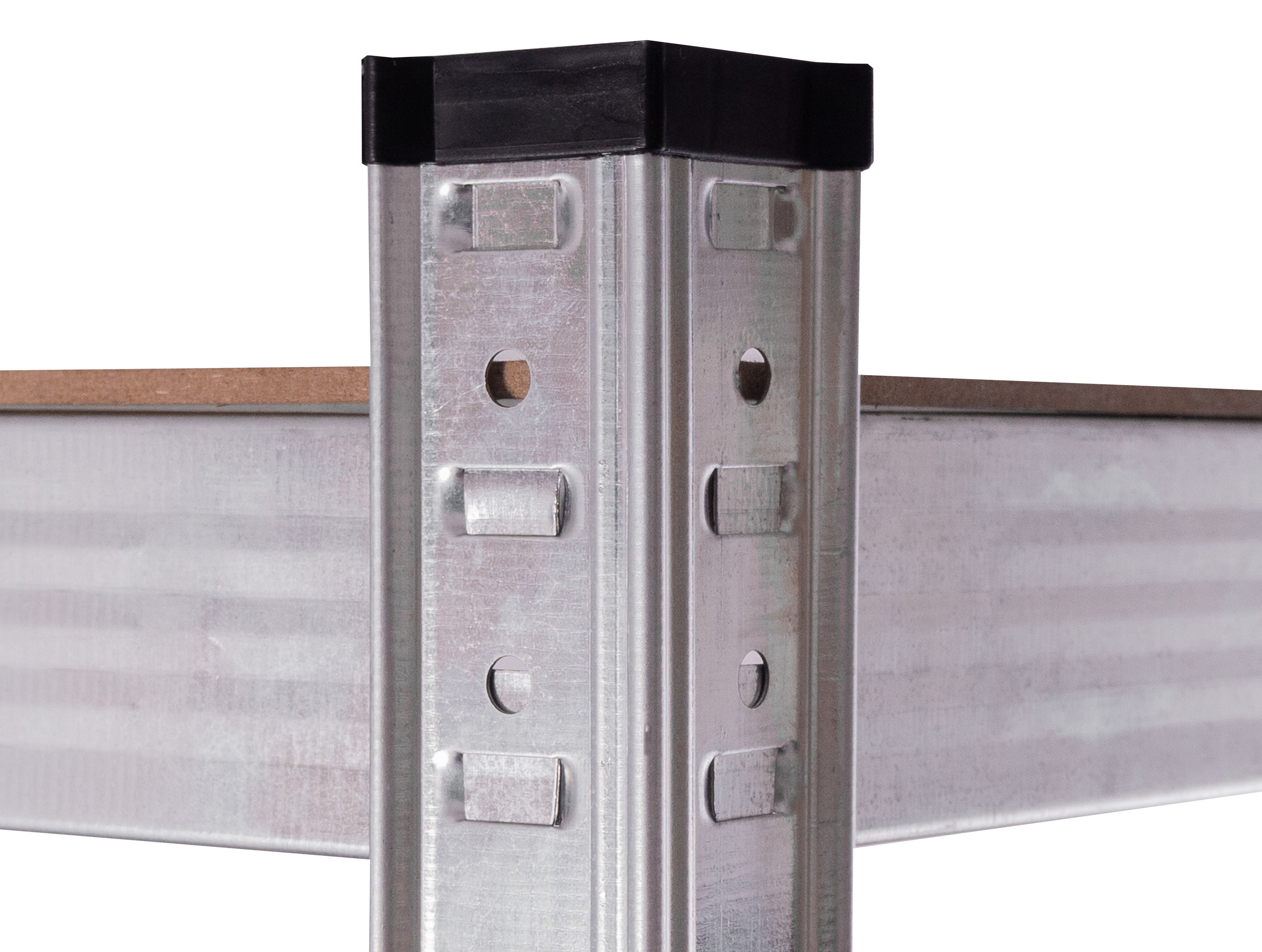 Na výšce cca 174 cm máte k dispozici 5 polic z mdf, které lze výškově vložit dle potřeby. Rám z galvanizované oceli ve stříbrné barvě zaručuje stabilitu a velkou nosnost cca 375 kg (na každou polici připadá cca 75 kg).
