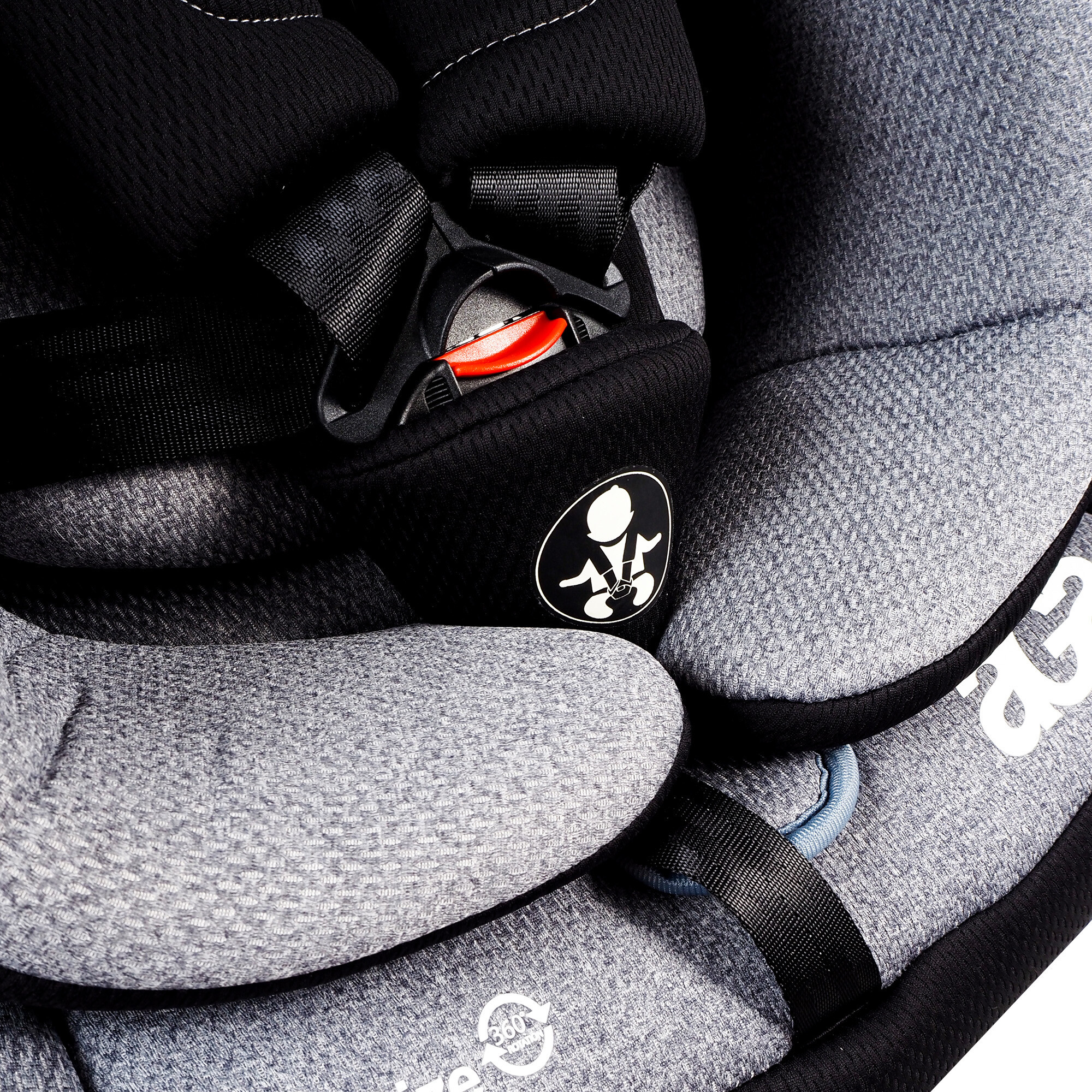 Autosedačka umožňuje umístit dítě buď ve směru, nebo proti směru jízdy. Otočný mechanismus o 360° usnadňuje manipulaci s dítětem při nastupování a vystupování, což oceníte zejména při každodenním používání. Sedačka nabízí také možnost nastavení sklonu opěradla v pěti úrovních, což zajišťuje, že vaše dítě bude vždy sedět nebo ležet v nejpohodlnější poloze.