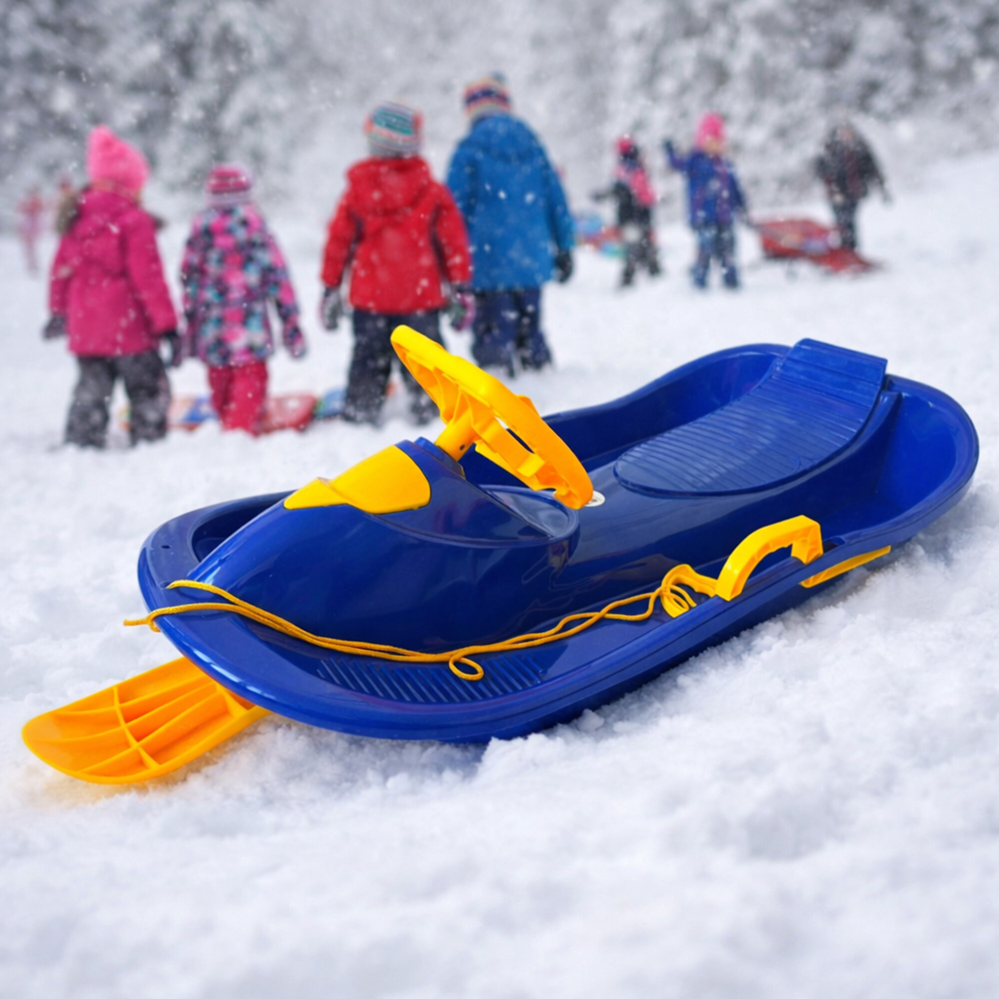 Brzdící páky vám dovolují lehké a rychlé zastavení bobů, takže se při potřebě okamžitého zastavení nemusíte tolik namáhat. Konstrukce bobů je vyrobena z pevného a odolného plastu, přičemž zaručují perfektní skluz na každém sněhu.