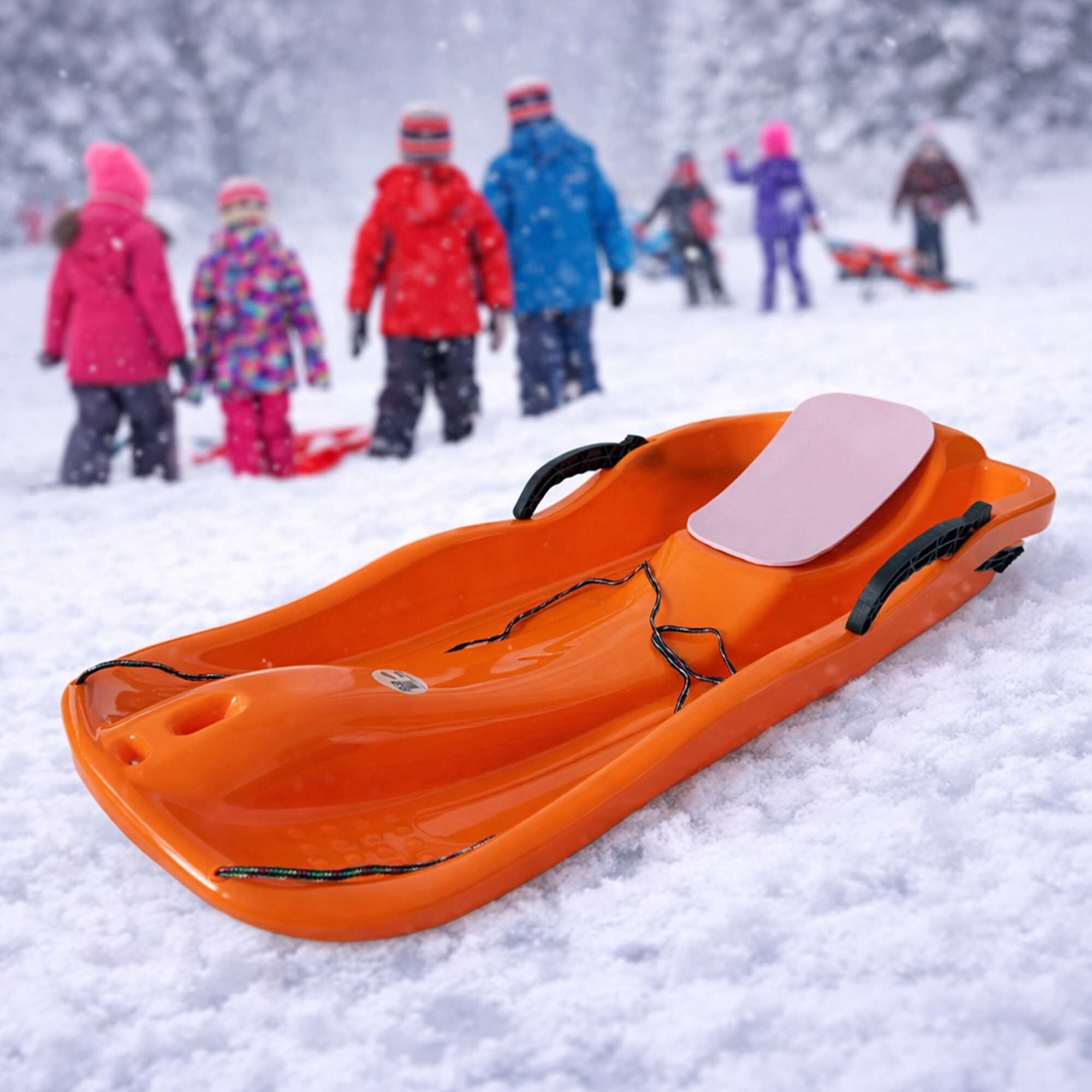 Dětské klasické boby v moderním designu, bez ostrých hran, s dvěma nezávislými brzdami.