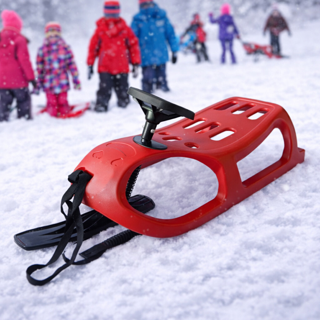 Sáně jsou vyrobené z vysoce odolného plastu a opatřené ocelovými skluznicemi, které zajišťují perfektní skluz po sněhu. Sáňky se jednoduše ovládají díky střední vodící lyžině která, je ovládatelná volantem.