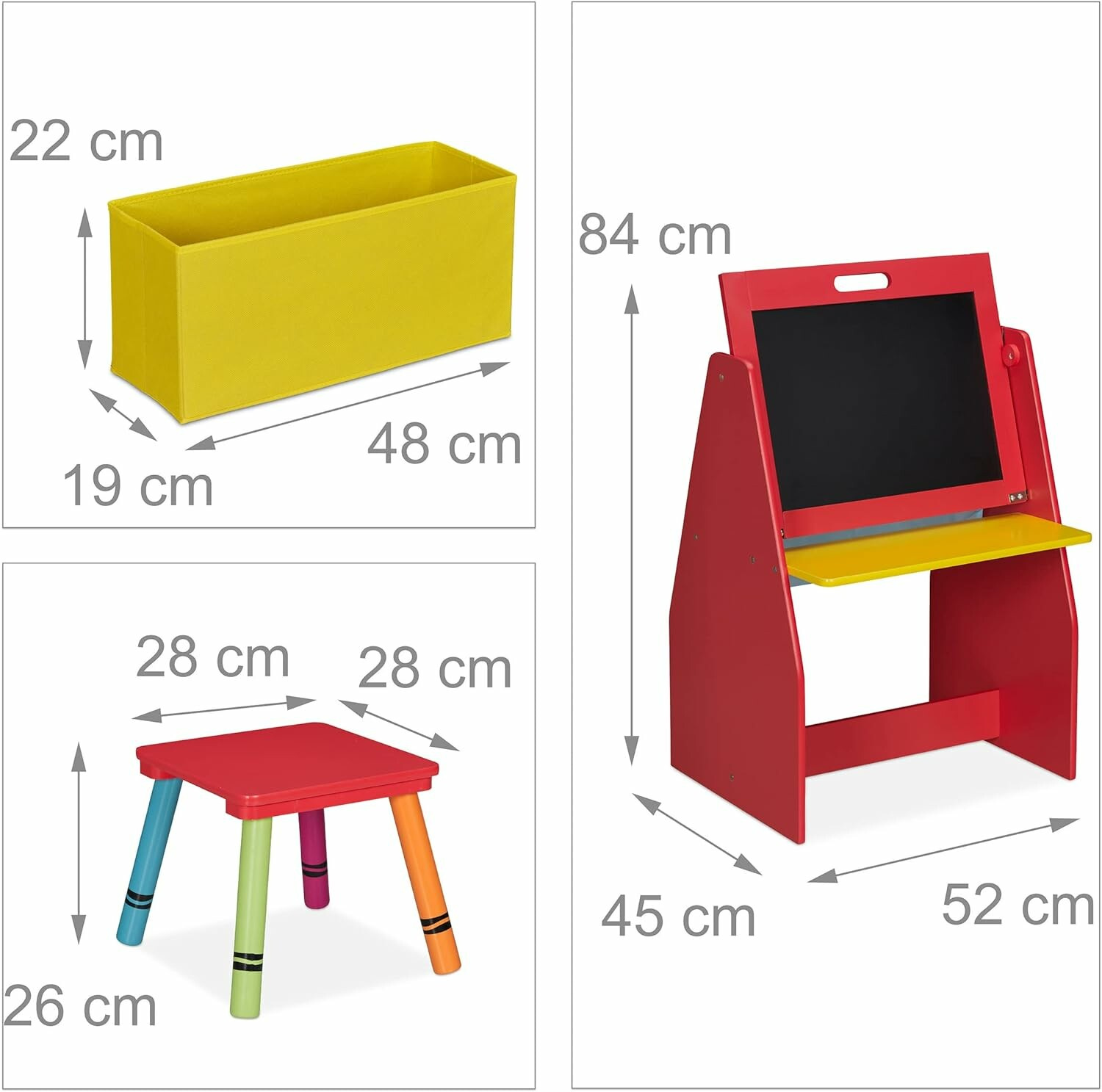Na jedné straně má povrch klasické křídové tabule, druhá strana tabule je magnetická. Pod tabulí je látkový koš, kde můžete uložit všechny oblíbené hračky.