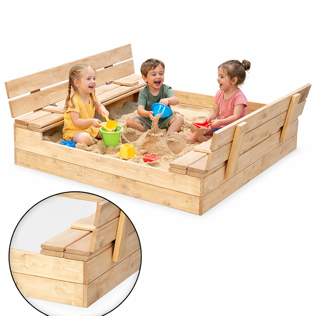 - Pískoviště s praktickým zámkovým systémem, může se změnit v jediném okamžiku na dvě lavičky