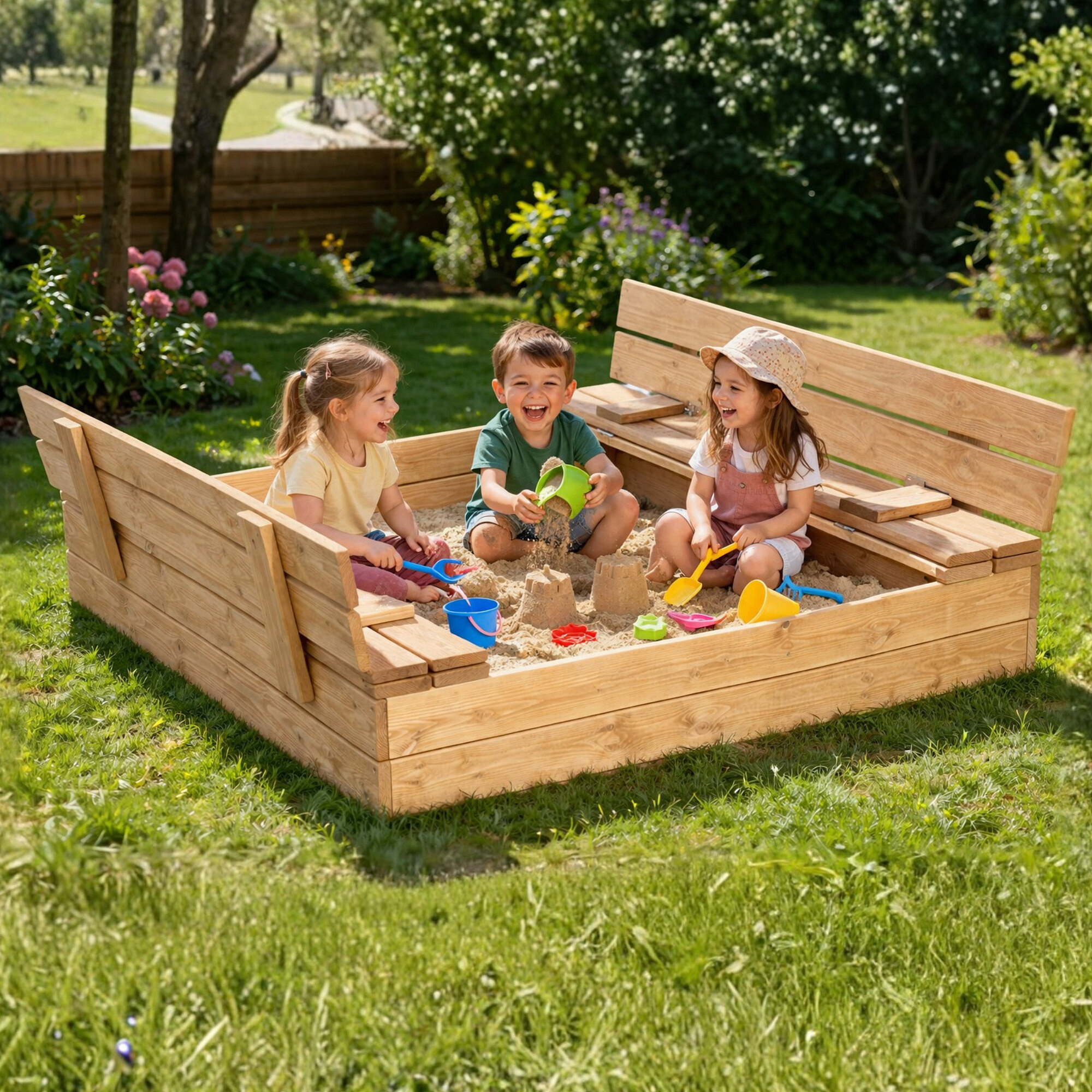 Dětské pískoviště je vhodné do každé zahrady, kde si děti mohou bezstarostně hrát. Dřevo není povrchově ošetřeno(impregnováno) a nemá předvrtané otvory.