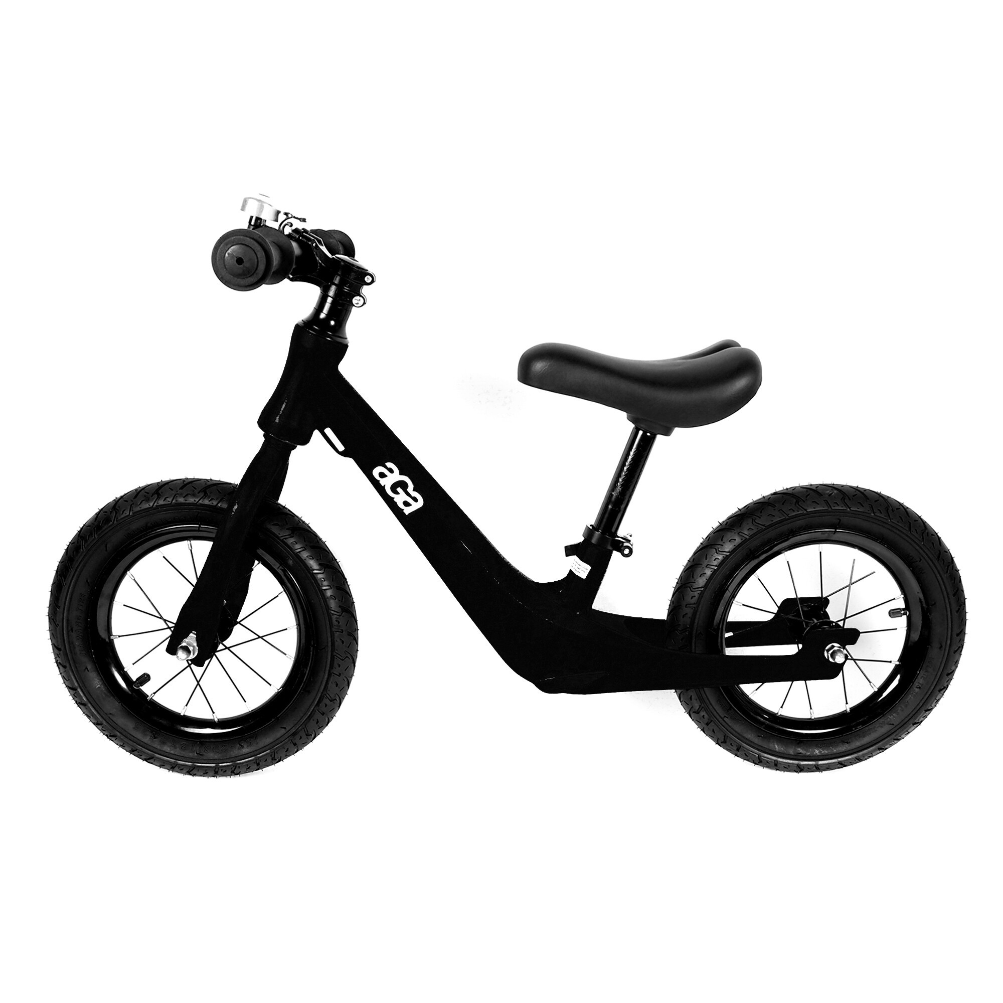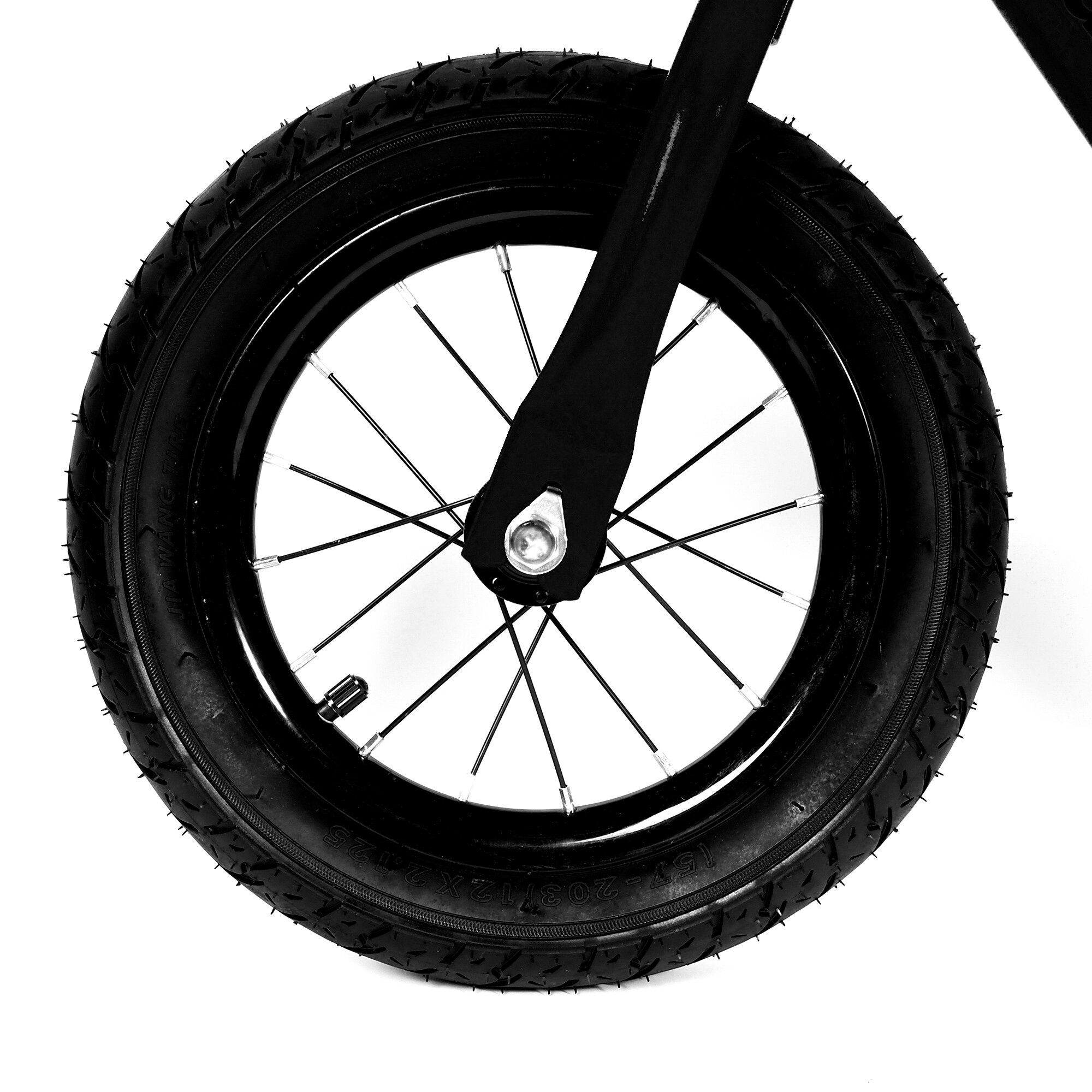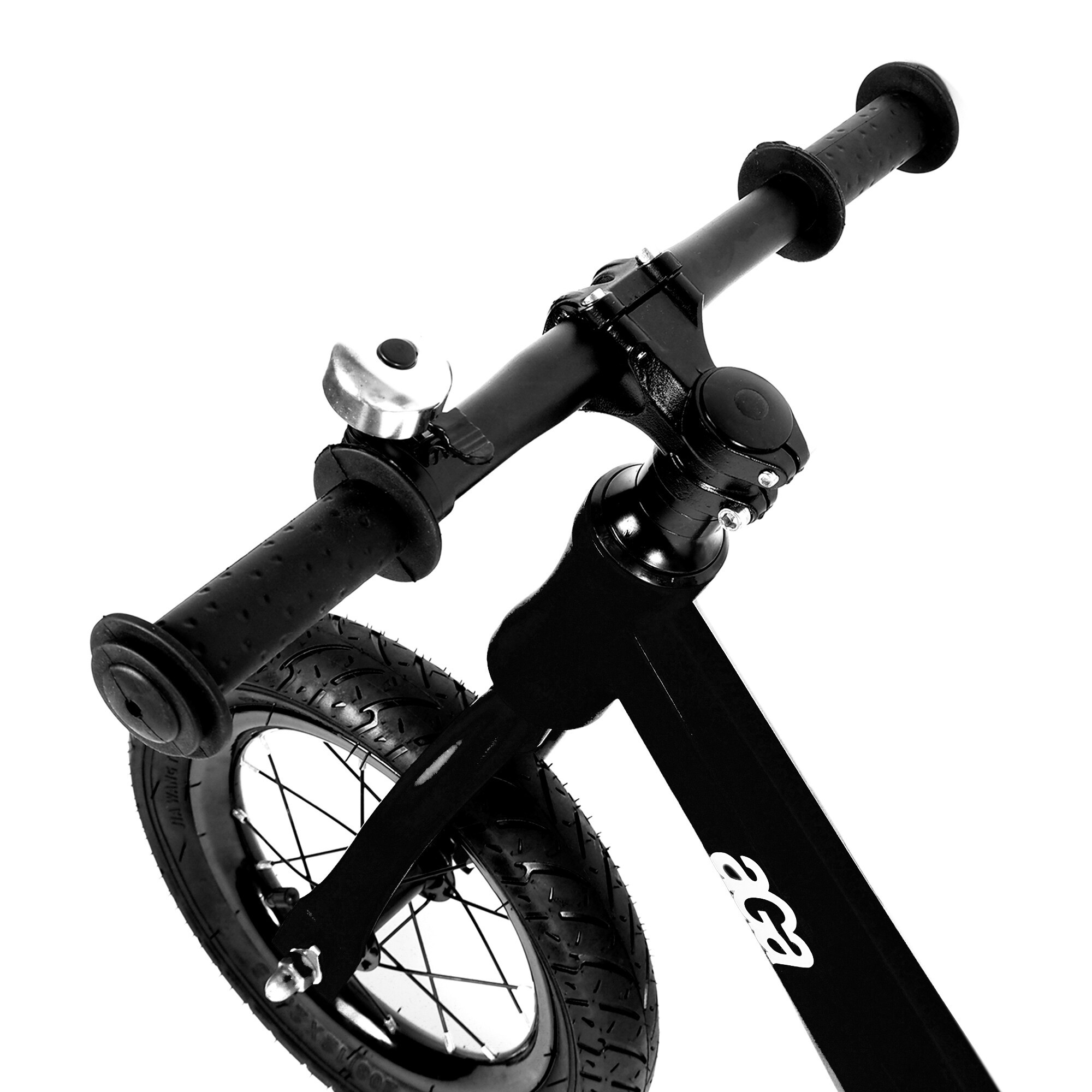 Odrážedlo je vybaveno vzduchovými pneumatikami o rozměru 12"*2.125, které poskytují hladkou a pohodlnou jízdu i na nerovném terénu. Ocelové ráfky přidávají na robustnosti a spolehlivosti celého kola. Výška řídítek je pevně nastavena na 55 cm, což je ideální pro malé děti, aby mohly snadno dosáhnout a ovládat své odrážedlo.