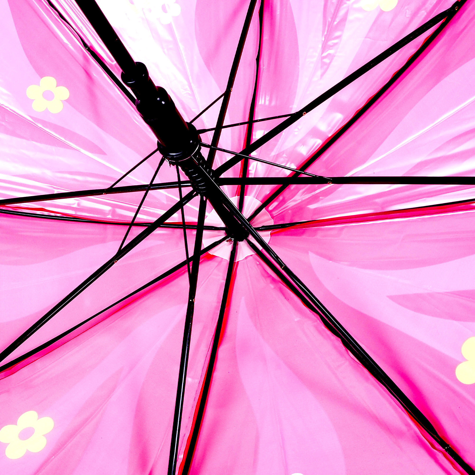 Deštník má zaoblené konce a pevnou konstrukci, která odolá i silnějšímu větru. Rukojeť je ergonomicky tvarovaná a přizpůsobená dětským rukám, což zajišťuje pohodlné a bezpečné držení.