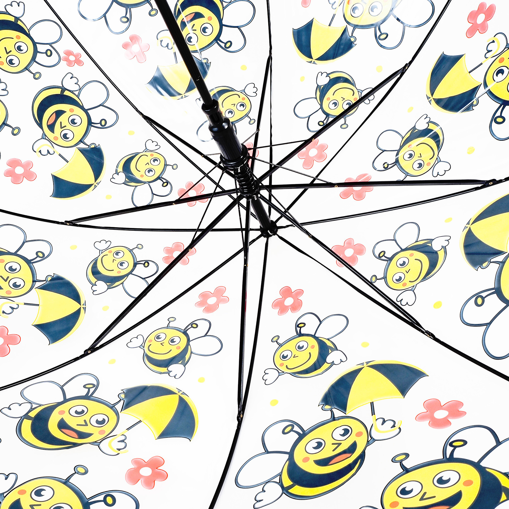 Deštník má zaoblené konce a pevnou konstrukci, která odolá i silnějšímu větru. Rukojeť je ergonomicky tvarovaná a přizpůsobená dětským rukám, což zajišťuje pohodlné a bezpečné držení.