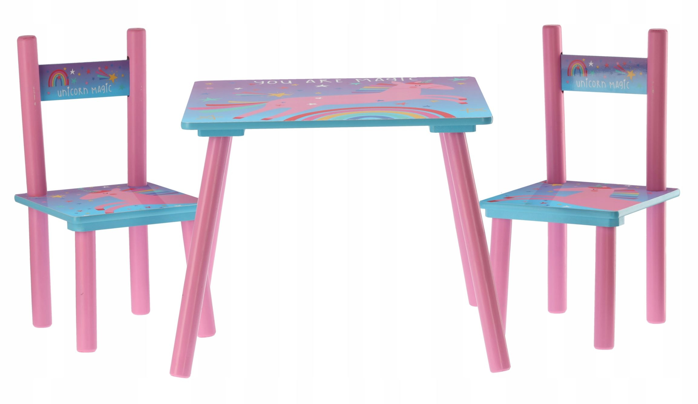 Součástí balení jsou také 2 židle. Dětský stolek se židlemi je vyroben z MDF materiálu a borovicového dřeva.