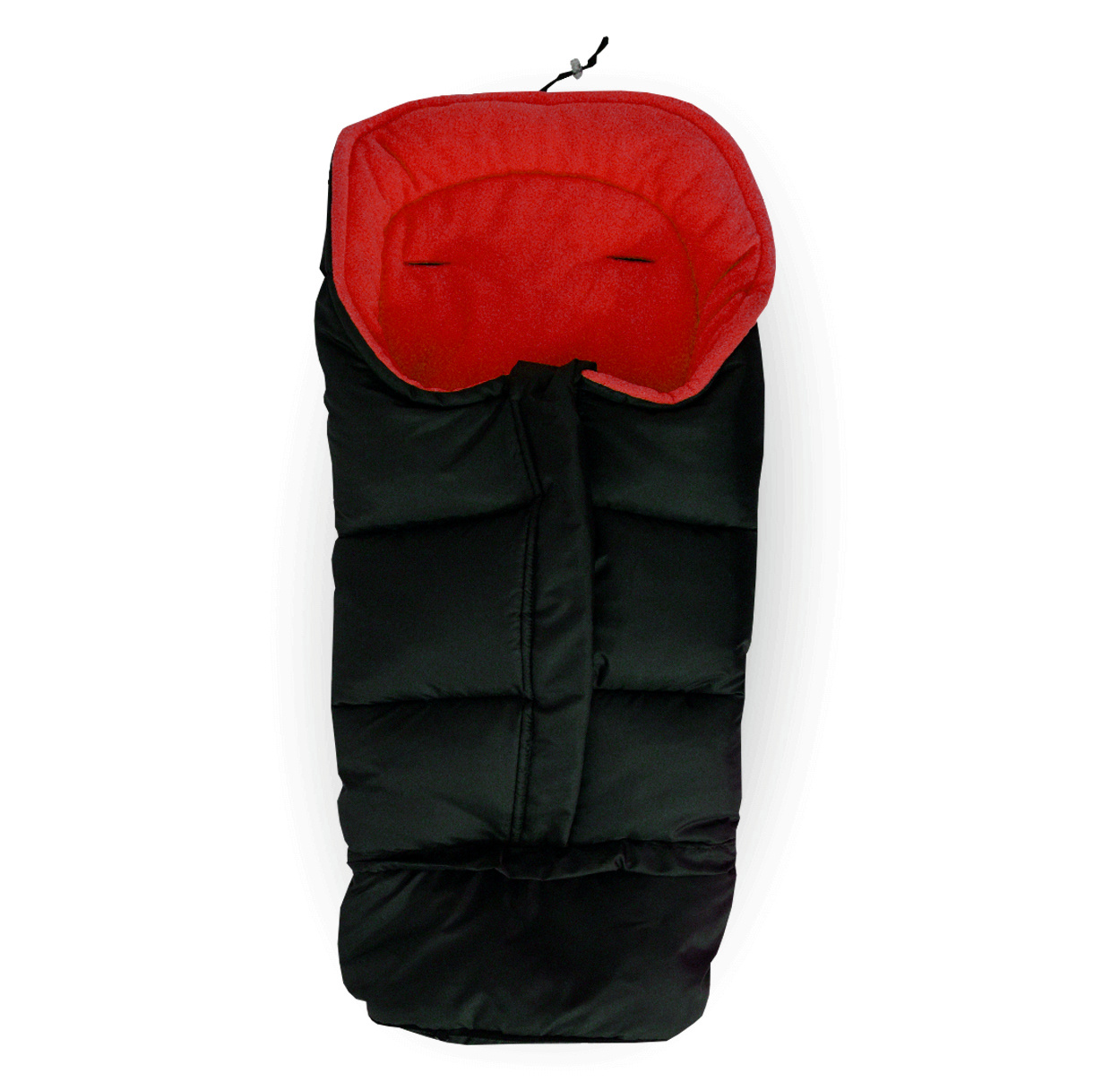 Dětský fusak má rozepínací zip, otvory na 5-bodové bezpečnostní pásy a gumové úchytky umožňující připevnění ke kočárku.
