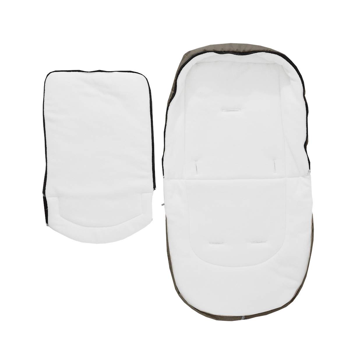 Dětský fusak má rozepínací zip, otvory na 5-bodové bezpečnostní pásy a gumové úchytky umožňující připevnění ke kočárku.