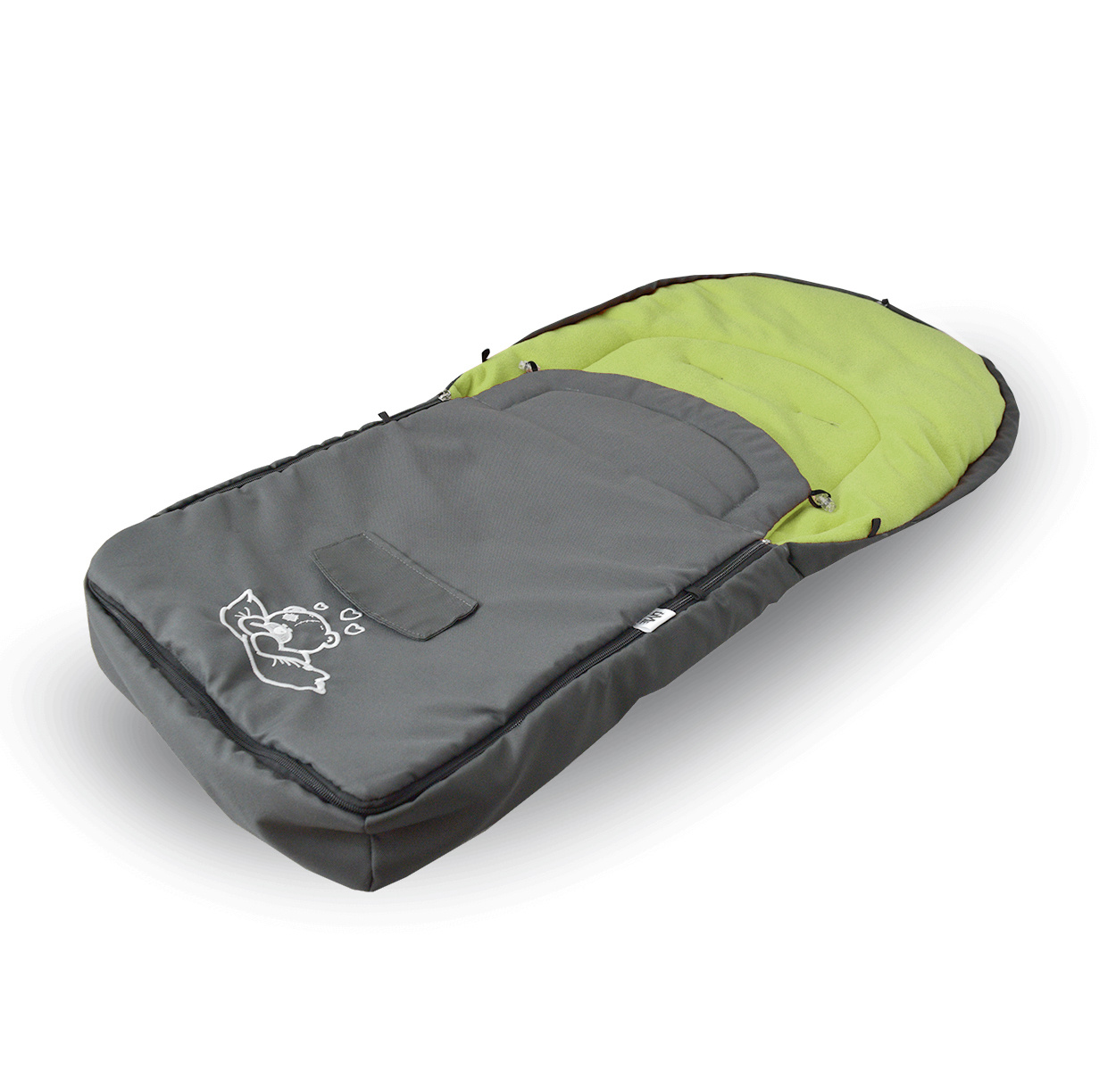 Dětský fusak má rozepínací zip, otvory na 5-bodové bezpečnostní pásy a gumové úchytky umožňující připevnění ke kočárku.