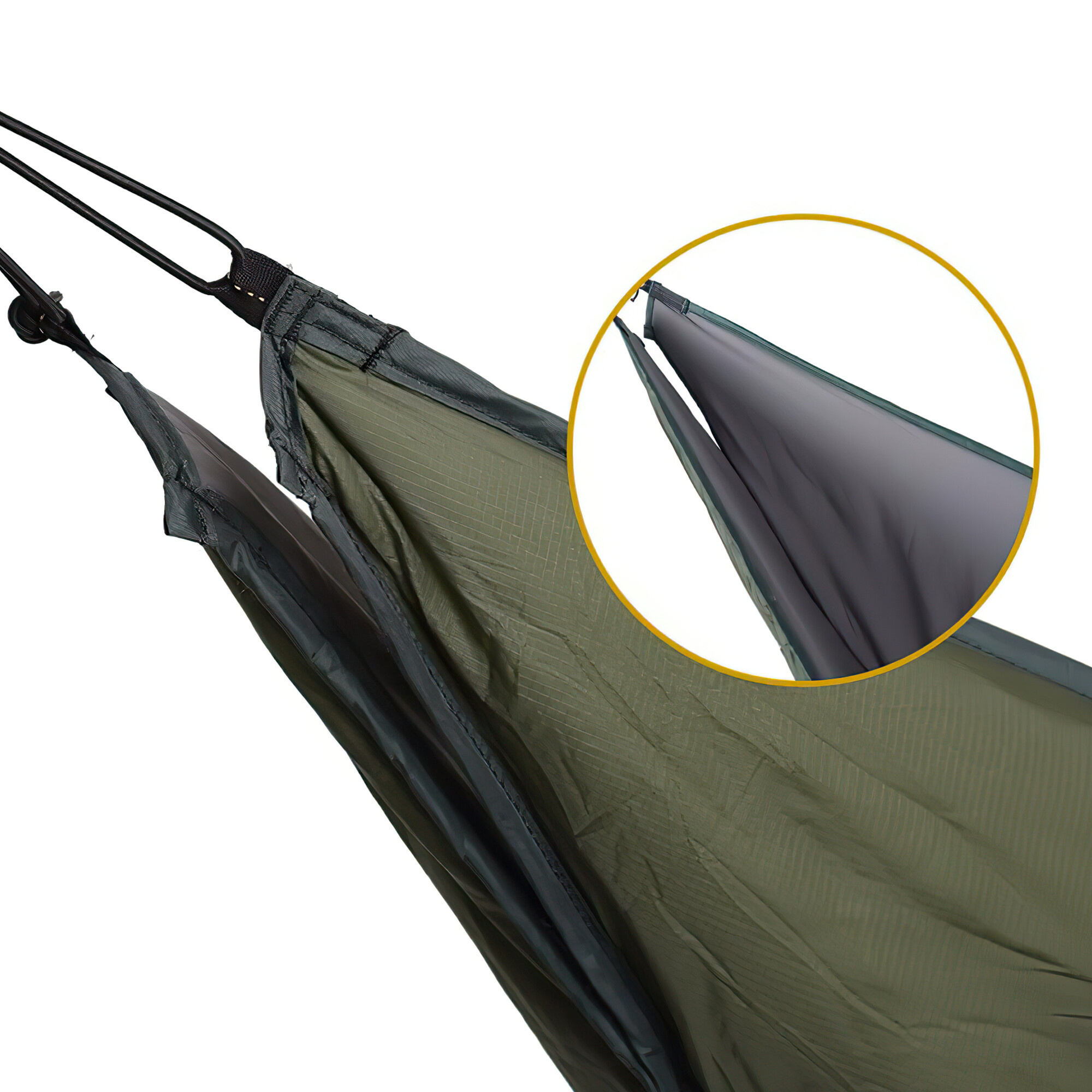 Hamaka je vyrobena z vysoce kvalitního 20D 400T nylonu a 300T pongee, což zajišťuje její mimořádnou odolnost a pevnost. Tyto materiály jsou známé svou schopností odolávat náročným podmínkám, což znamená, že se můžete spolehnout na jejich dlouhou životnost. Navíc jsou velmi příjemné na dotek, což zvyšuje komfort při používání.