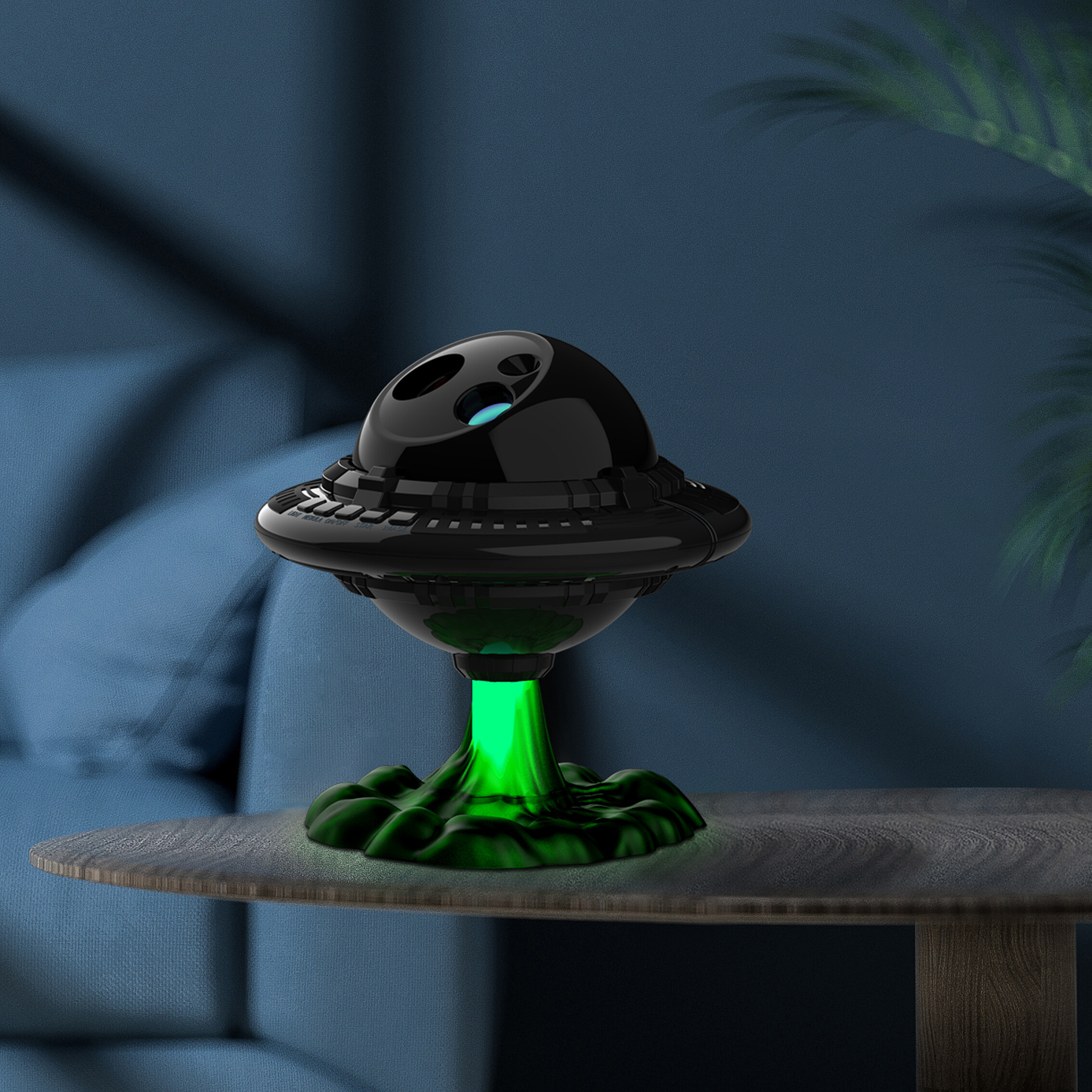 Podsvícený podstavec mimozemské lodi vytváří efekt, jak by loď vzlétávala. U podstavce lze měnit barvy podsvícení.