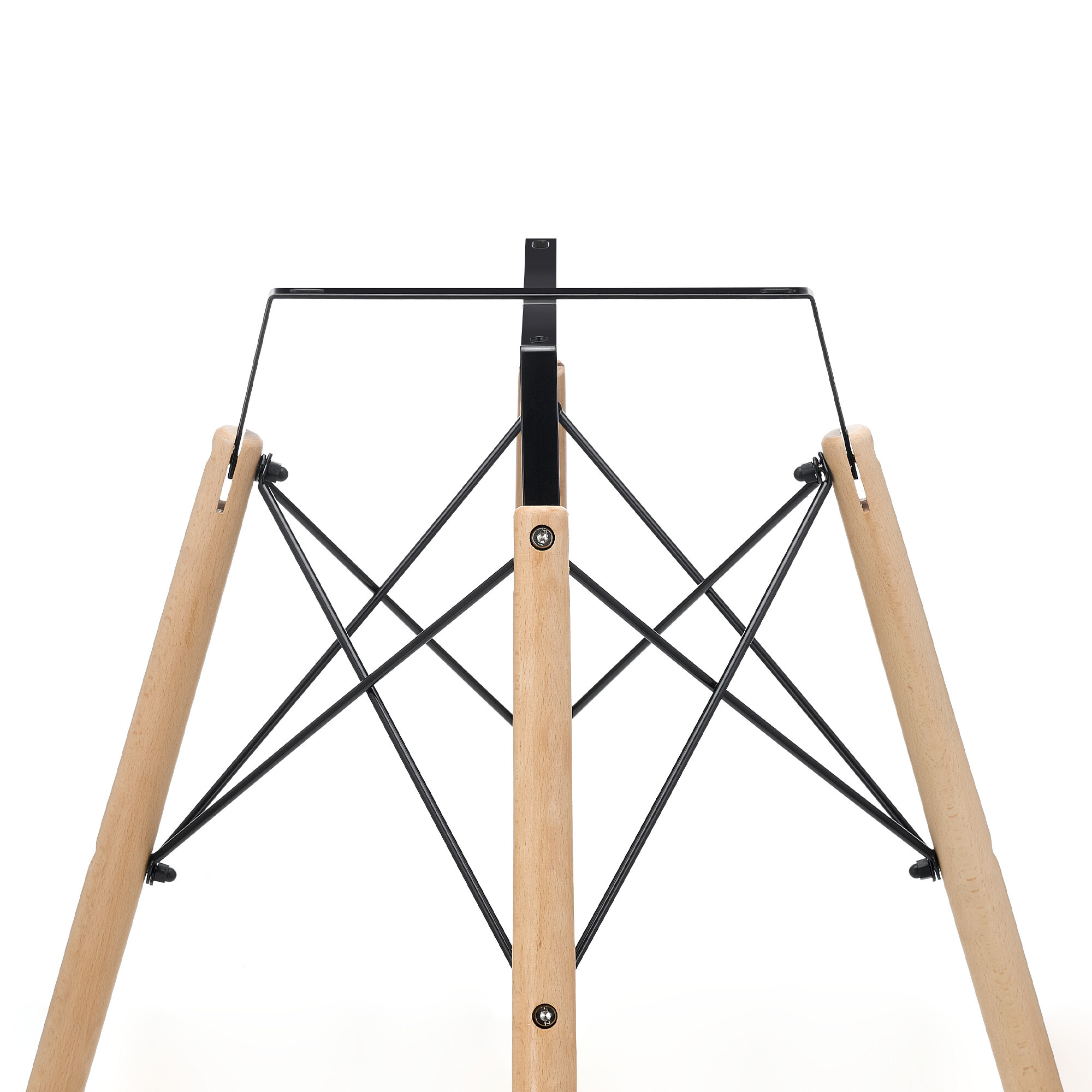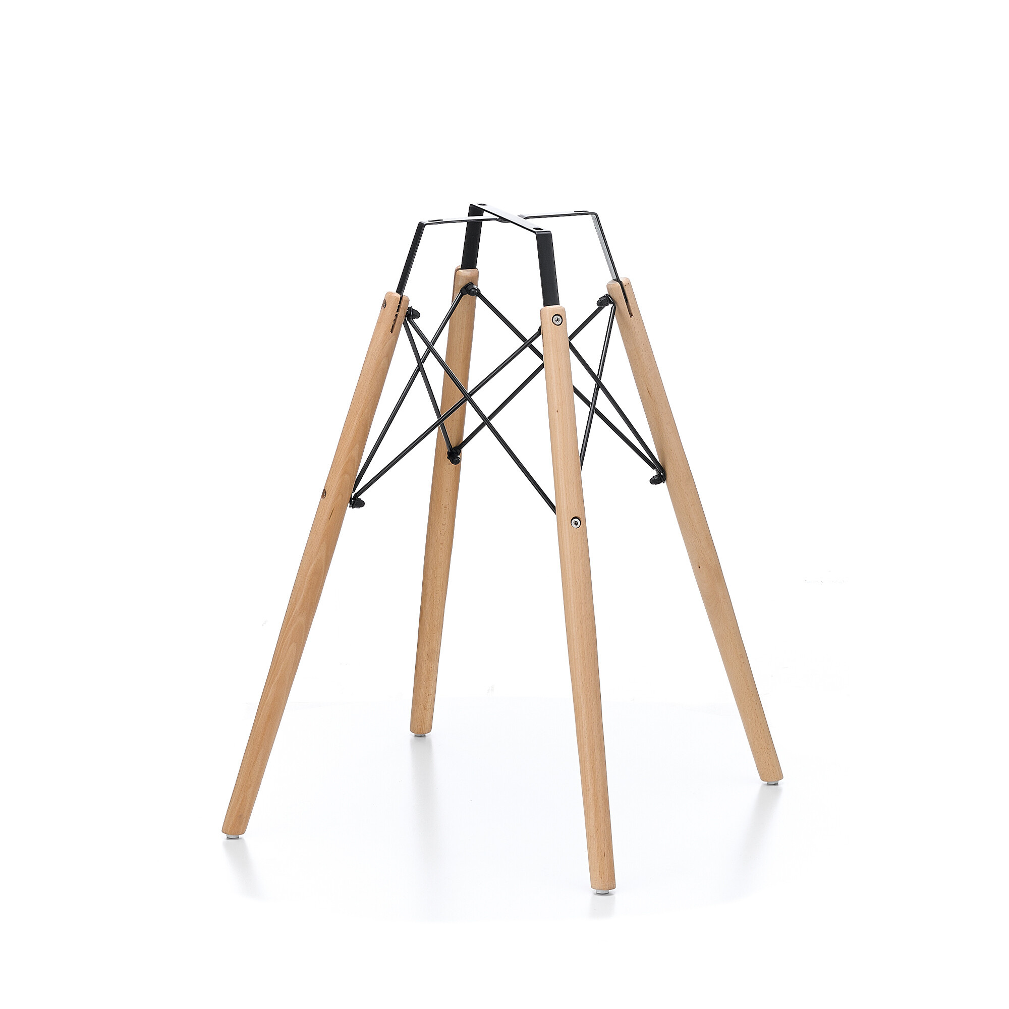 Nohy stolu jsou vyrobeny z bukového dřeva. Zpevněné ocelovou konstrukcí, která je ošetřena černou práškovou barvou.