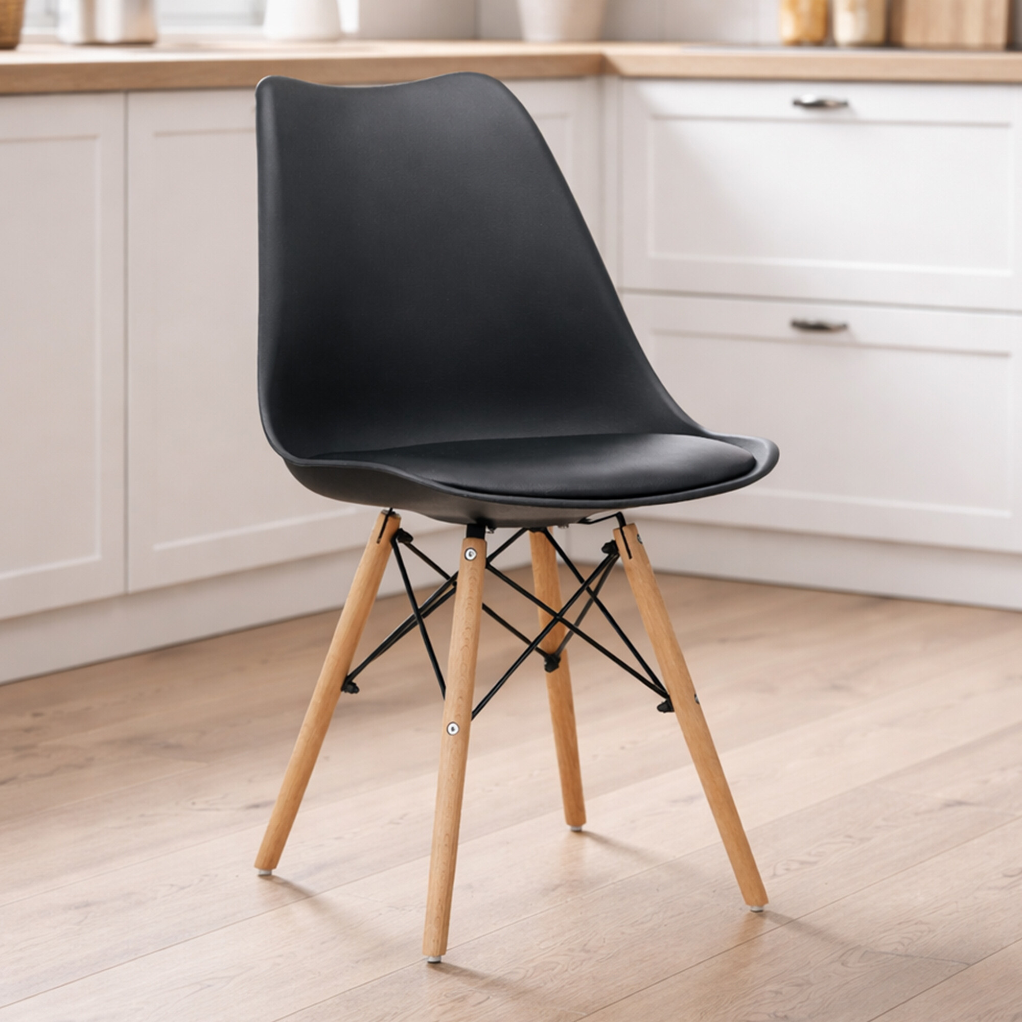 Židle je vyrobena z kvalitního a odolného polypropylenu s polštářem v potahu umělé kůže v kombinaci podnože z bukového dřeva.