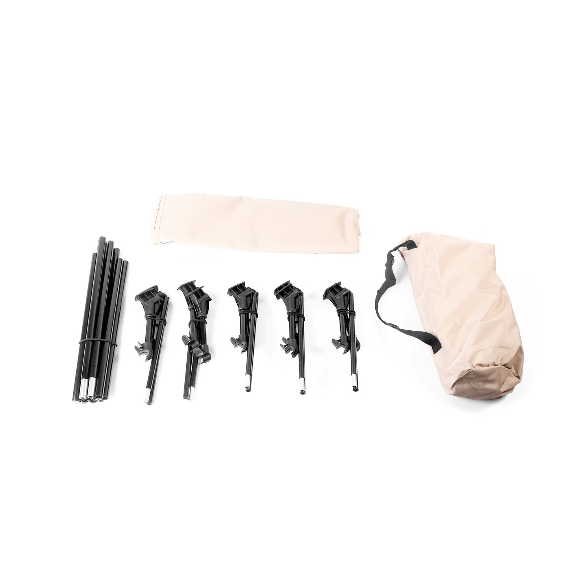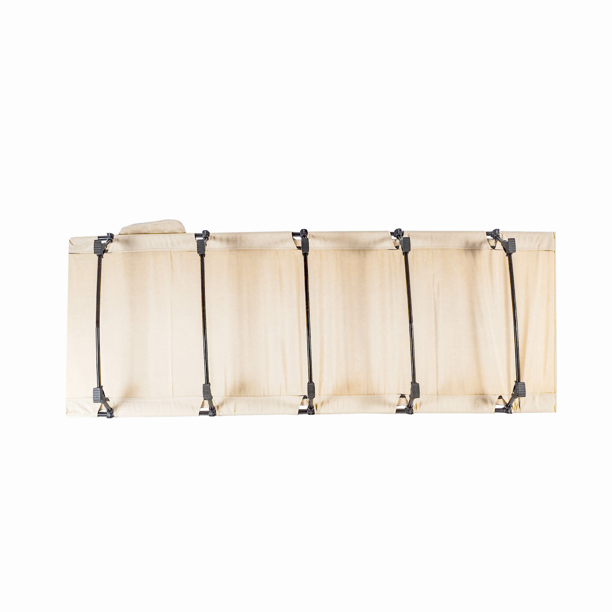 Potah lehátka je vyroben z kvalitního polyesteru a oxfordu, což zajišťuje pohodlí a odolnost proti opotřebení. Tento materiál je snadno udržovatelný a odolný vůči vlhkosti, což je ideální pro použití v přírodě.