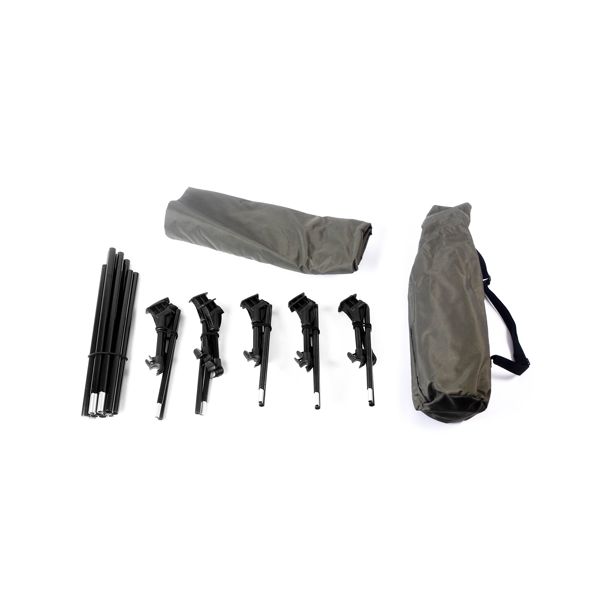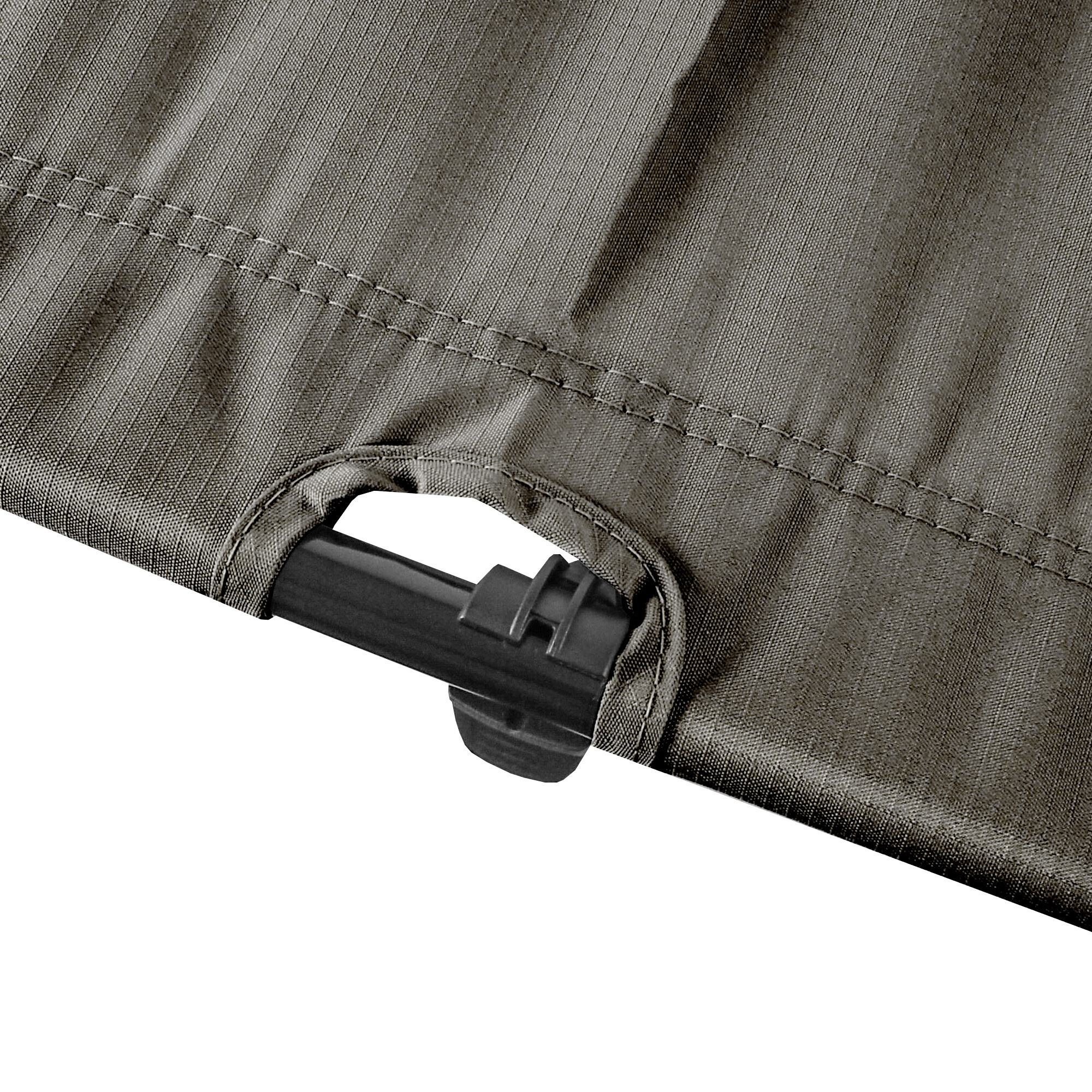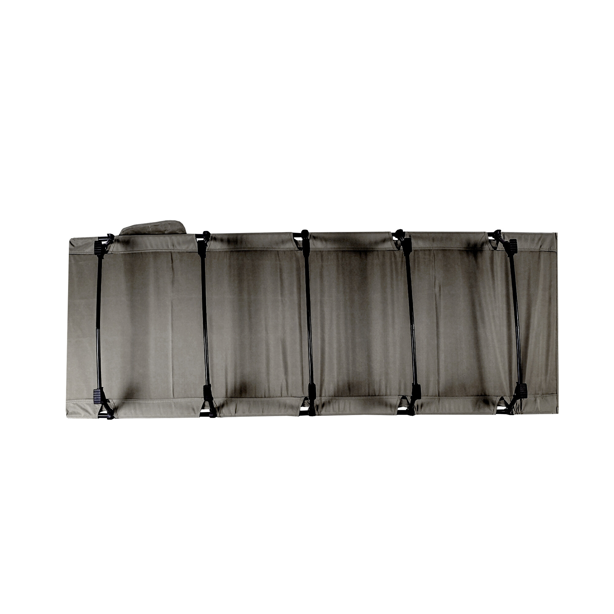 Potah lehátka je vyroben z kvalitního polyesteru a oxfordu, což zajišťuje pohodlí a odolnost proti opotřebení. Tento materiál je snadno udržovatelný a odolný vůči vlhkosti, což je ideální pro použití v přírodě.