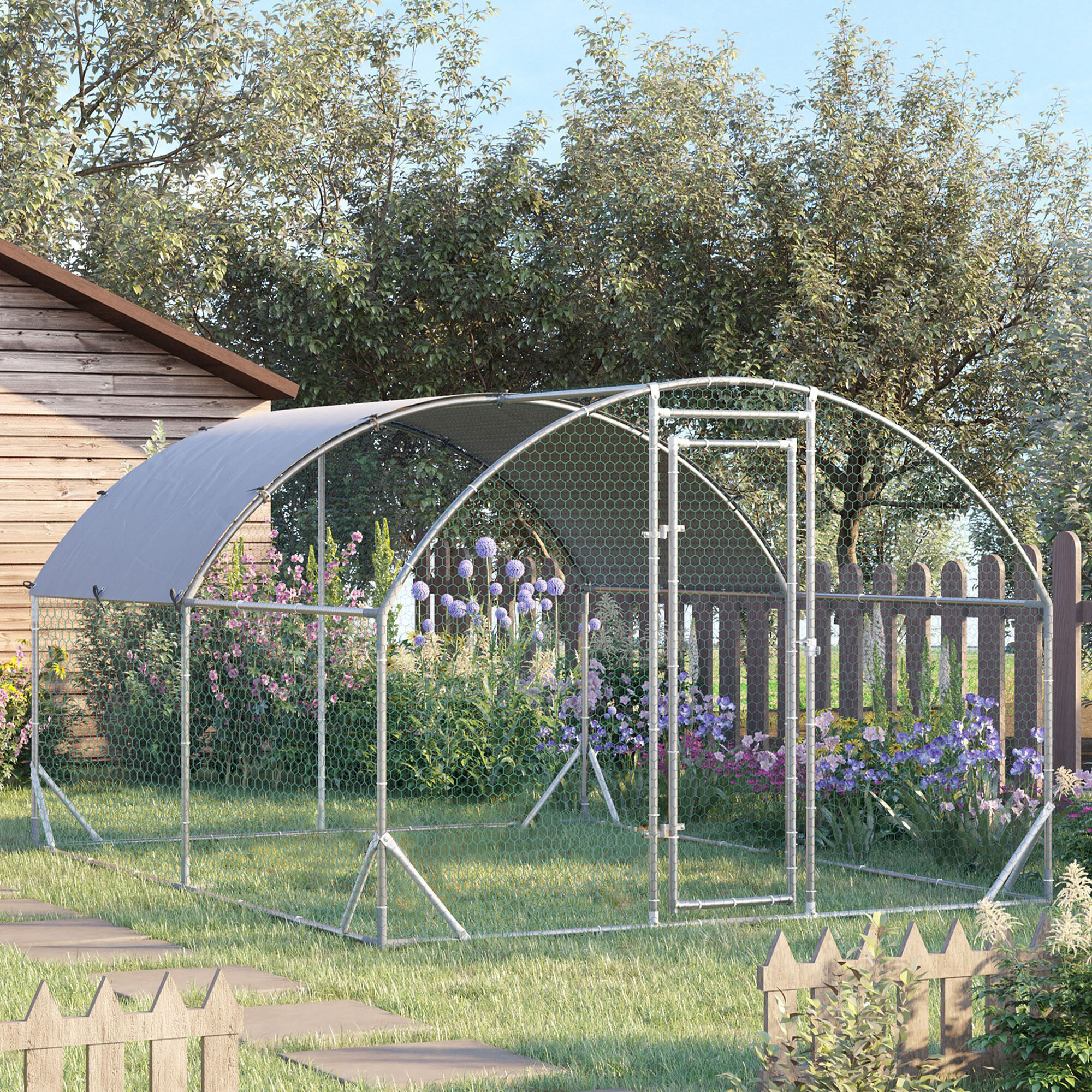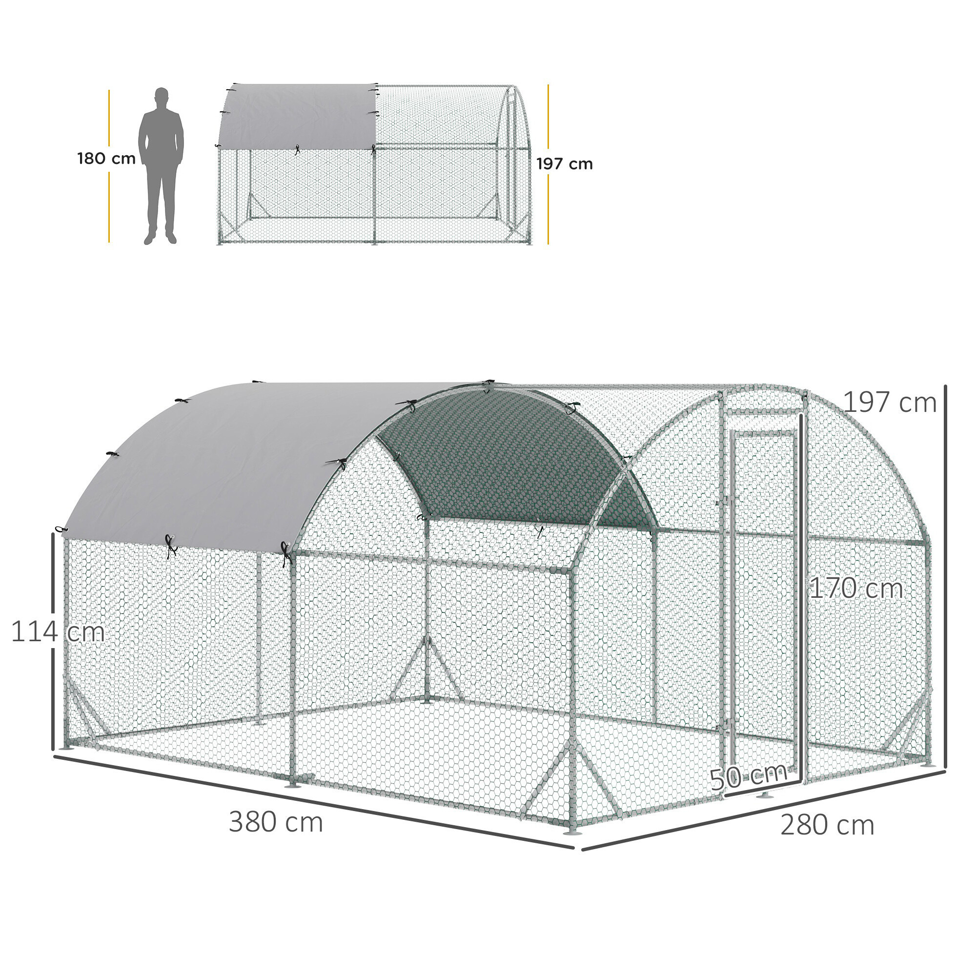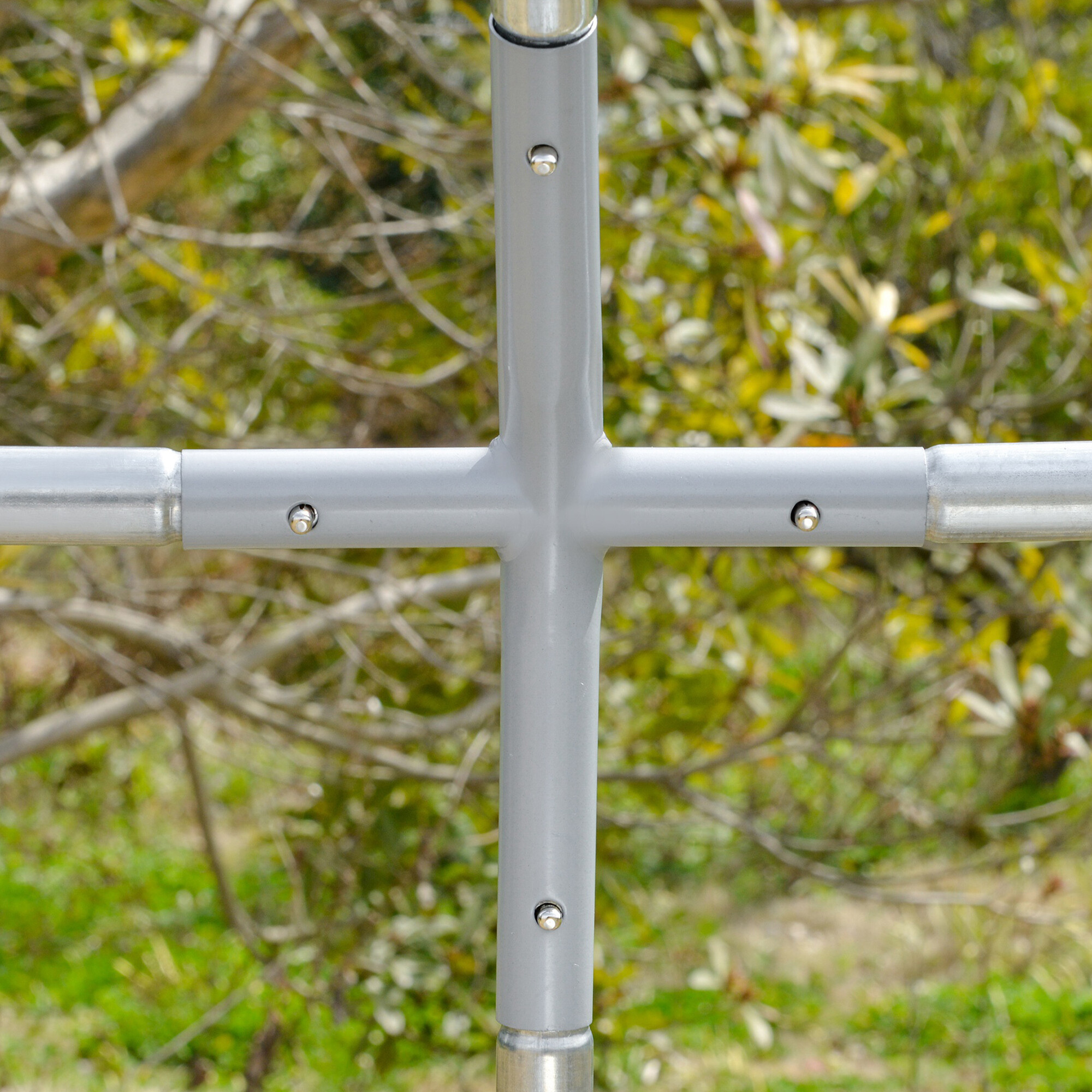 Klec vyrobena z pevné stříbrné pozinkované oceli, která dodá výběhu patřičnou stabilitu a zabrání nechtěným úrazům, v podobě útěků vaší drůbeže. Konstrukce je doplněna o pozinkované pletivo v zelené barvě a střechu, kterou tvoří šedá PVC plachta.