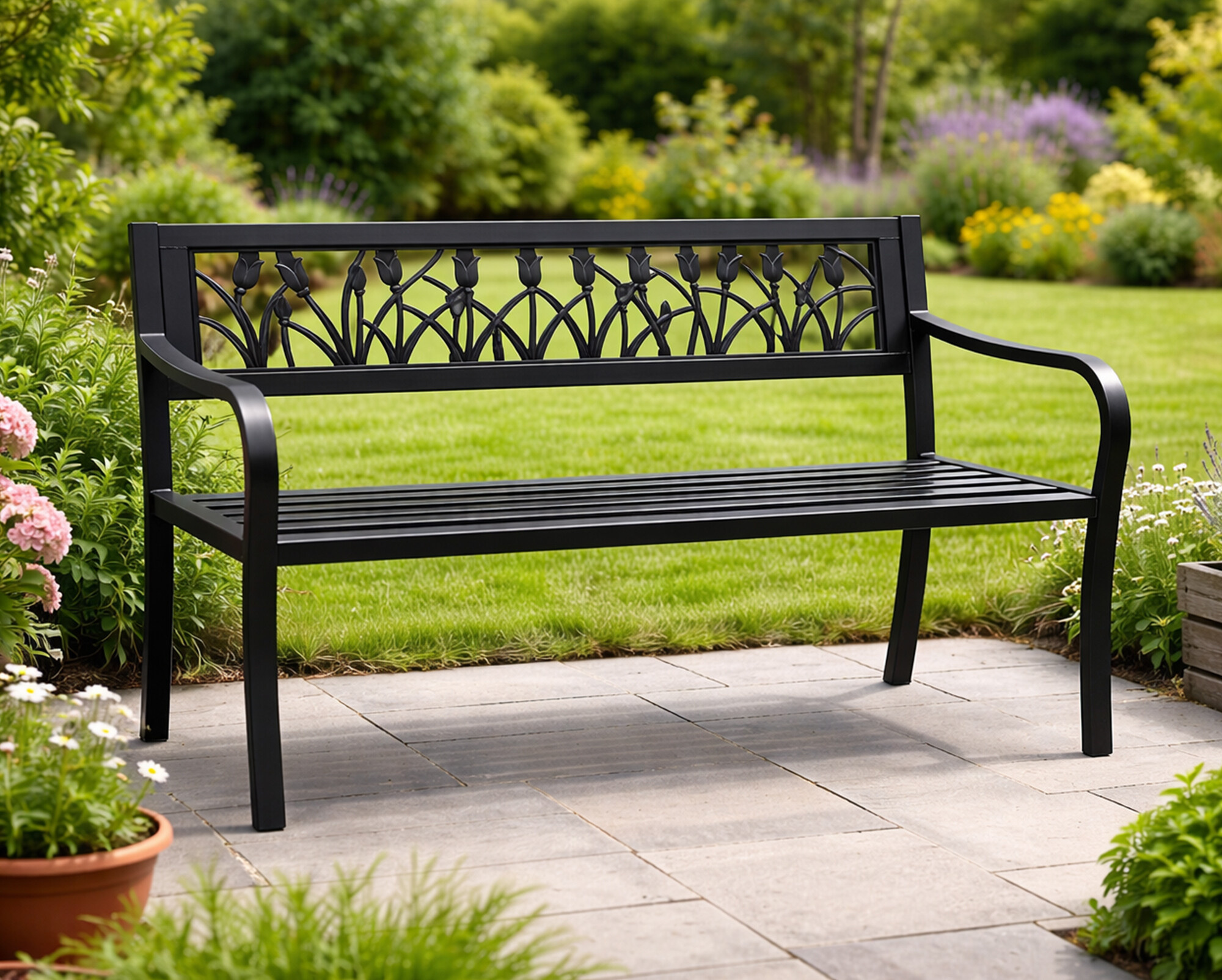 Konstrukce zahradní lavice je vyrobena z oceli a litiny, tyto materiály jsou odolné a zároveň zaručí stabilitu. Konstrukce lavičky je opatřena povrchovou úpravou práškovým lakováním, lavice tedy výborně odolává vlivům počasí a má dlouhou životnost.