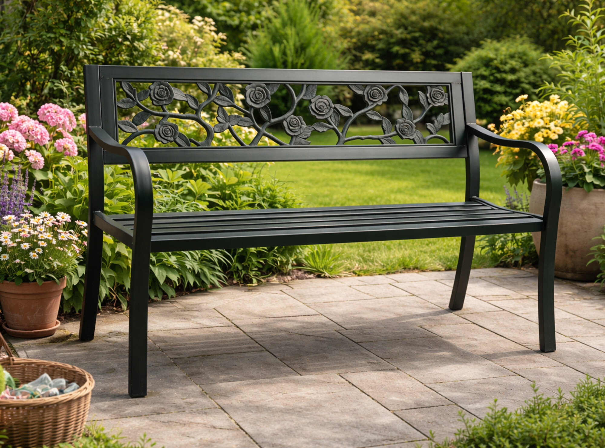 Konstrukce zahradní lavice je vyrobena z oceli a litiny, tyto materiály jsou odolné a zároveň zaručí stabilitu. Konstrukce lavičky je opatřena povrchovou úpravou práškovým lakováním, lavice tedy výborně odolává vlivům počasí a má dlouhou životnost.