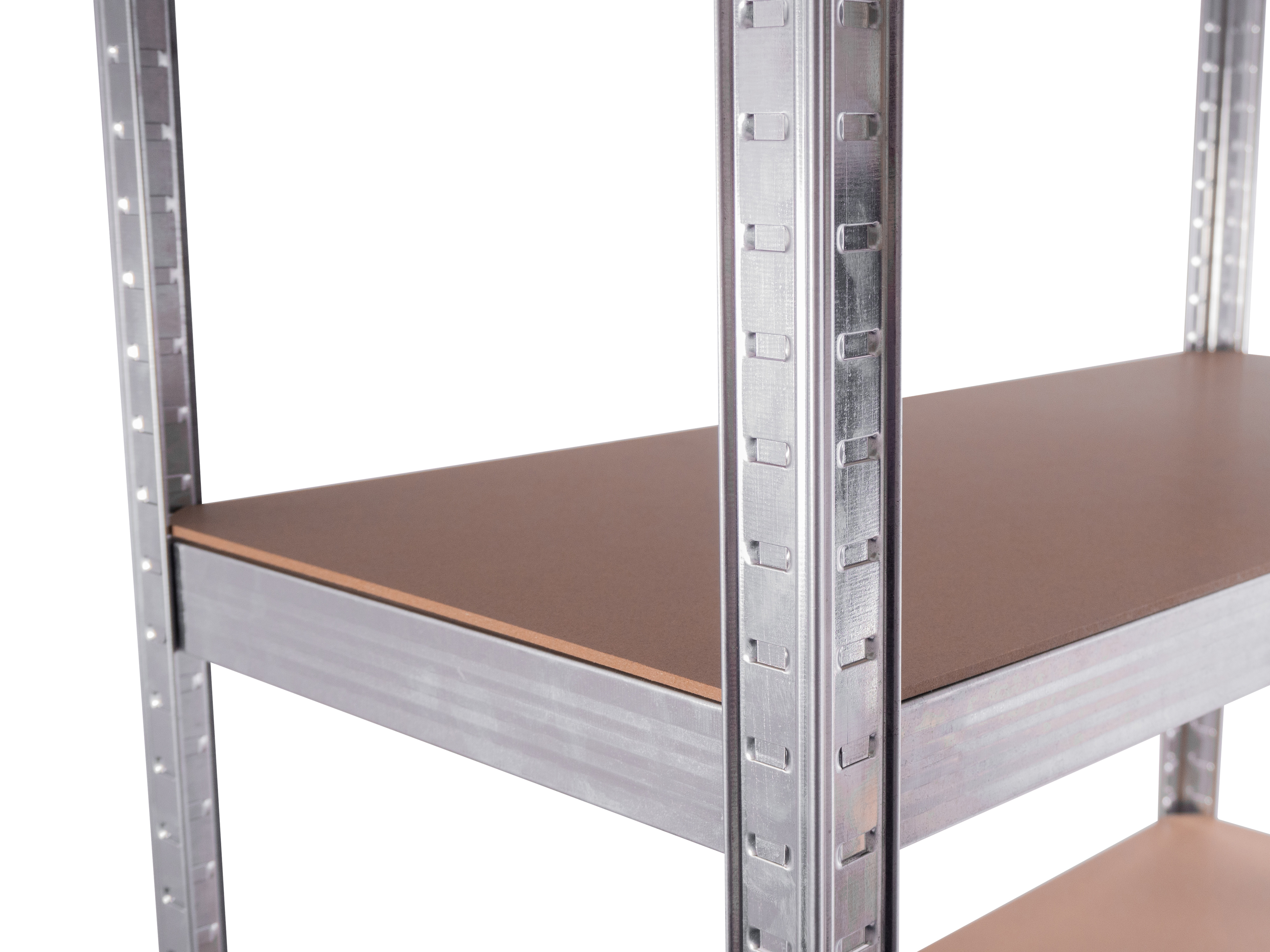 Na výšce cca 174 cm máte k dispozici 5 polic z mdf, které lze výškově vložit dle potřeby. Rám z galvanizované oceli ve stříbrné barvě zaručuje stabilitu a velkou nosnost cca 375 kg (na každou polici připadá cca 75 kg).
