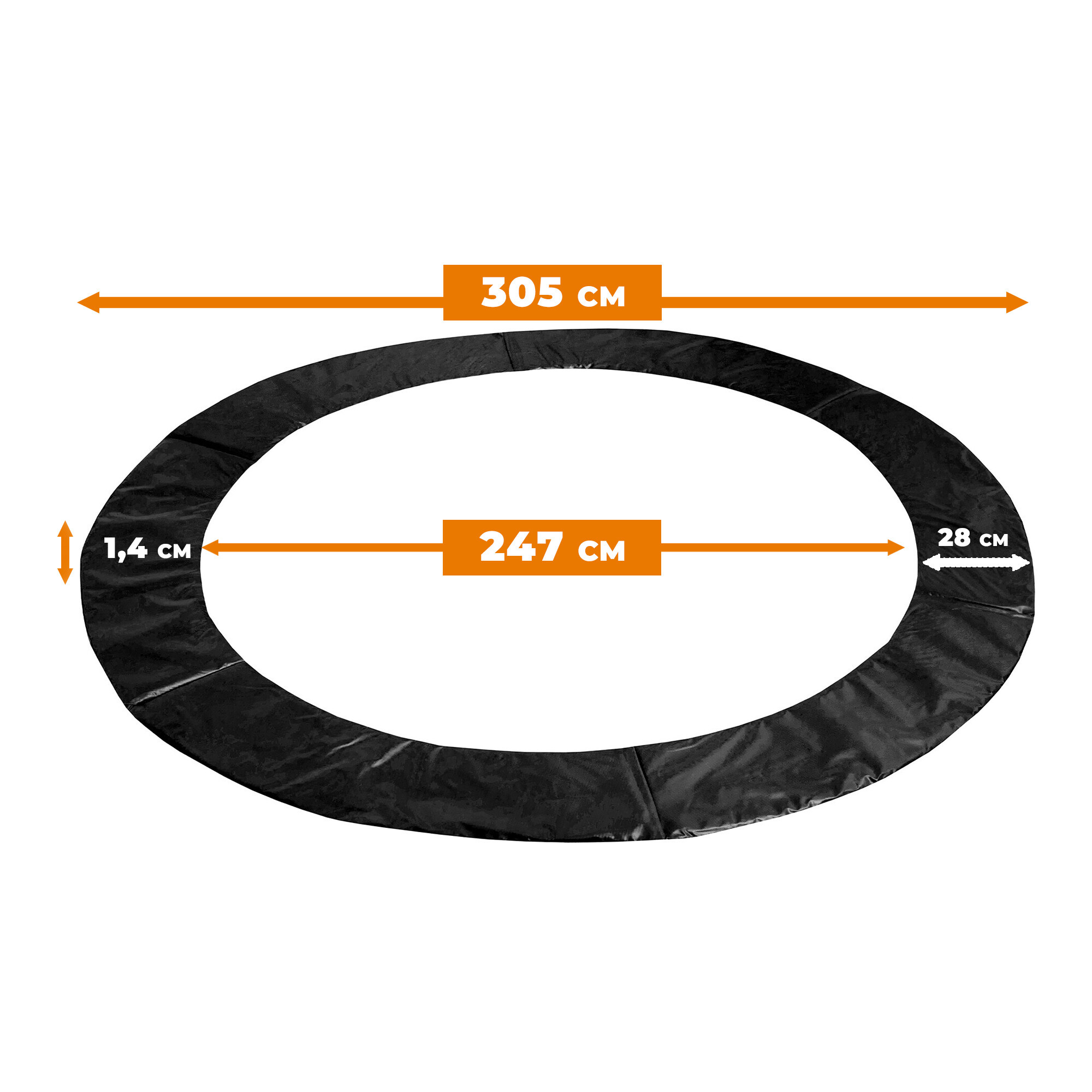 Ochranný kryt pružin (polstrovaný obvodový pás) je nezbytným bezpečnostním prvkem každé trampolíny. Zajišťuje maximální ochranu při skákání a minimalizuje riziko úrazu při kontaktu s pružinami. Tento model je určen pro trampolíny s vnitřní sítí, takže perfektně pasuje ke konstrukcím, kde je ochranná síť umístěna uvnitř skákací plochy.