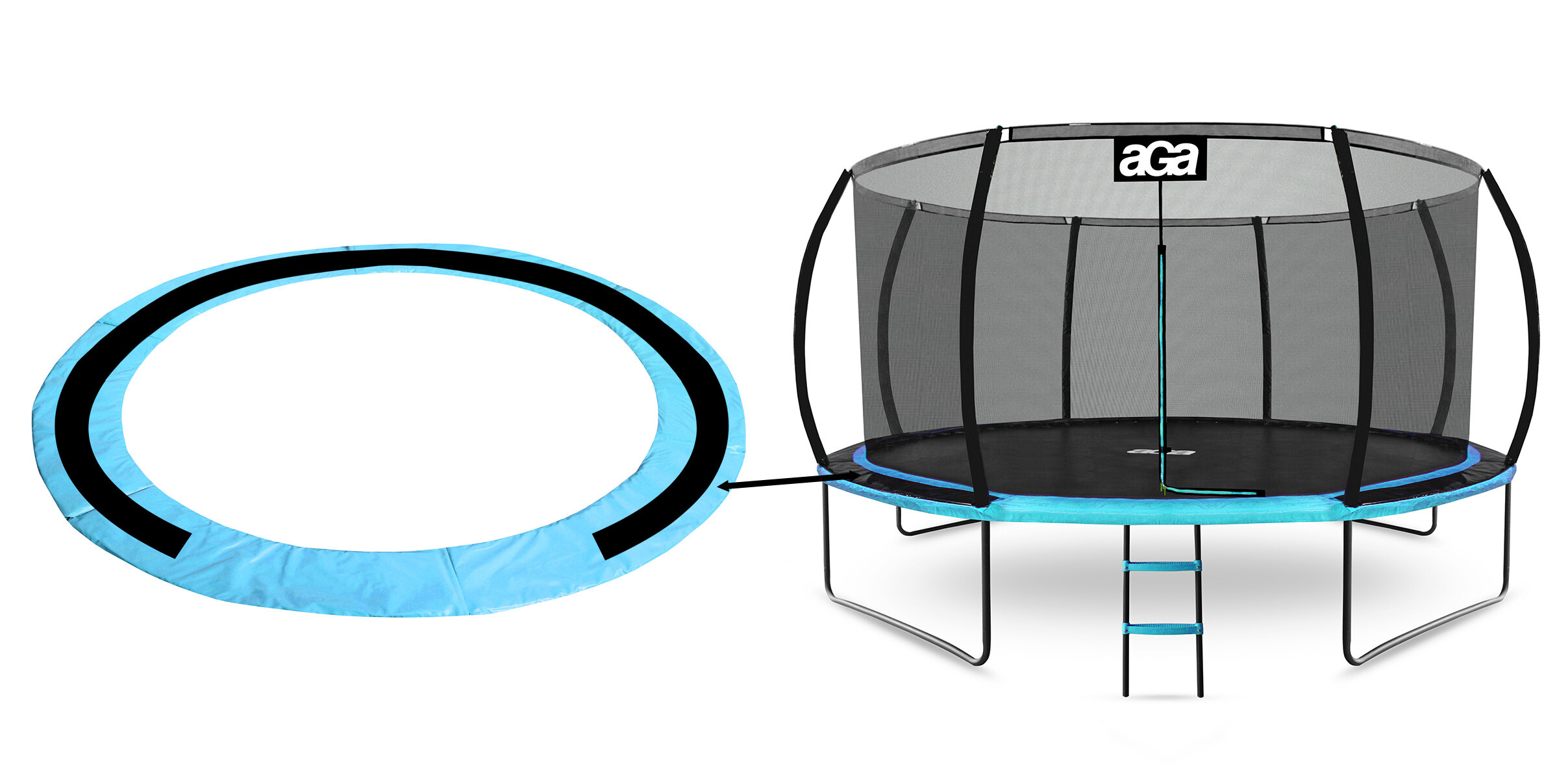 Ochranný kryt pružin (polstrovaný obvodový pás) je nezbytným bezpečnostním prvkem každé trampolíny. Zajišťuje maximální ochranu při skákání a minimalizuje riziko úrazu při kontaktu s pružinami. Tento model je určen pro trampolíny s vnitřní sítí, takže perfektně pasuje ke konstrukcím, kde je ochranná síť umístěna uvnitř skákací plochy.