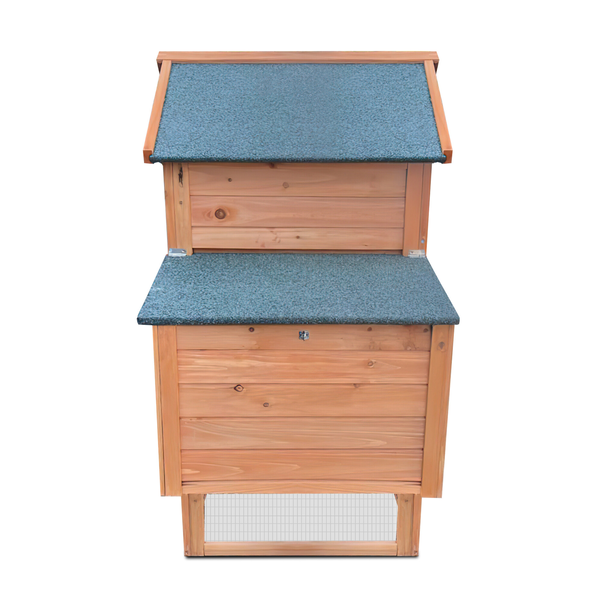 Kurník je vybaven bočním hnízdícím boxem, který poskytuje slepicím klidné a bezpečné místo pro snášení vajec. Výsuvný tác podestýlky je skvělým pomocníkem při údržbě čistoty stačí jej jednoduše vysunout, vyčistit a vrátit zpět.