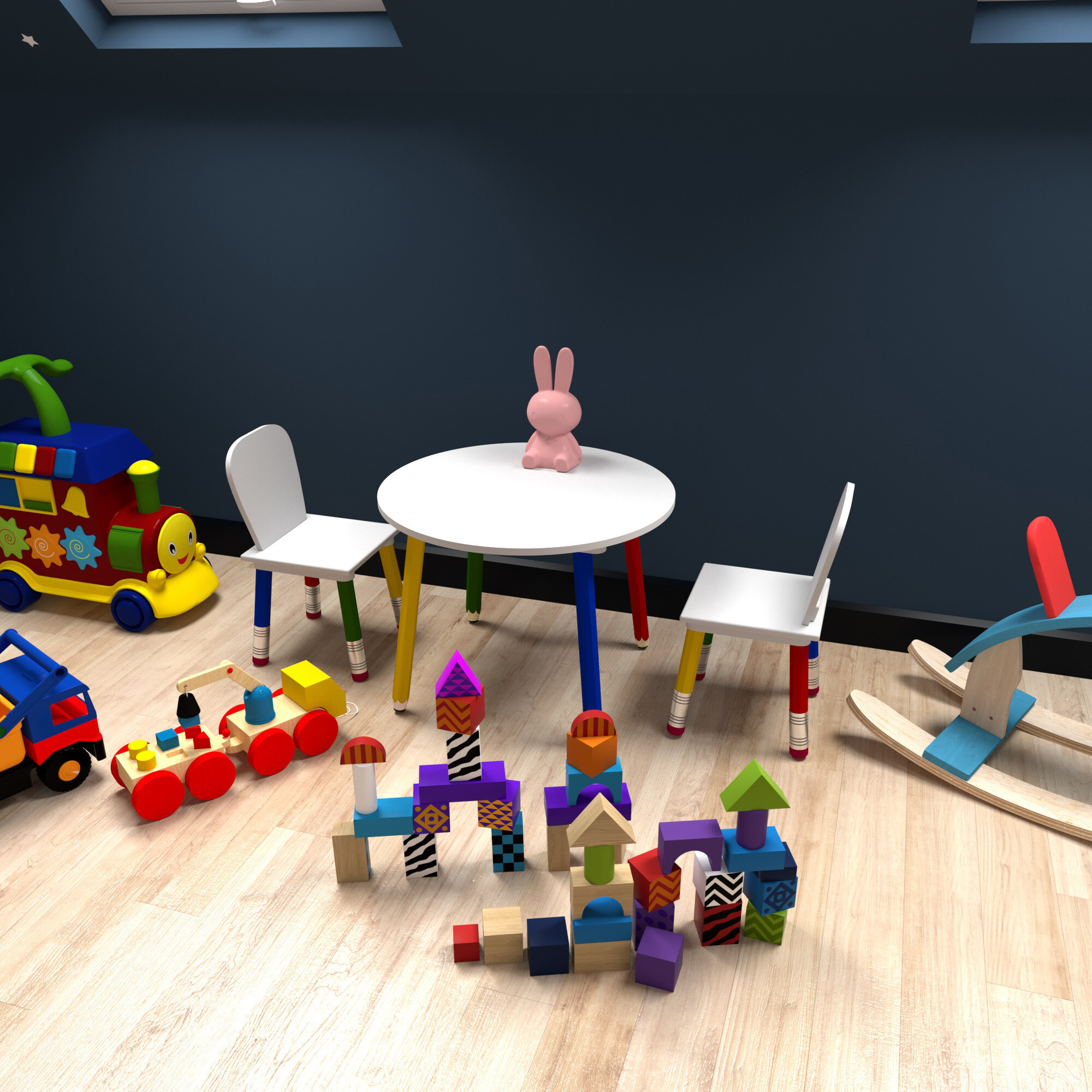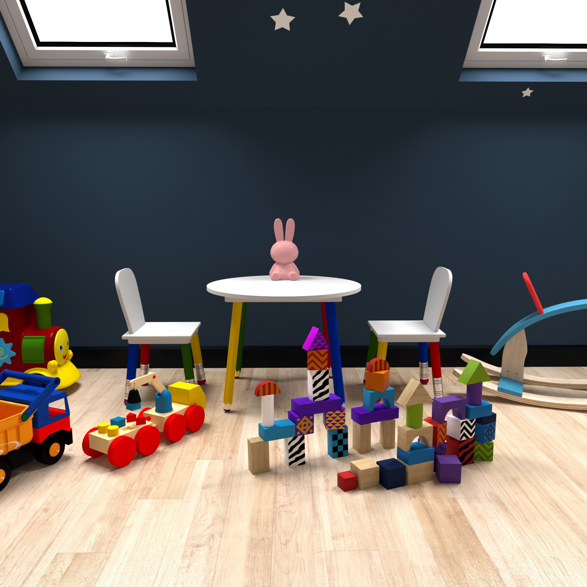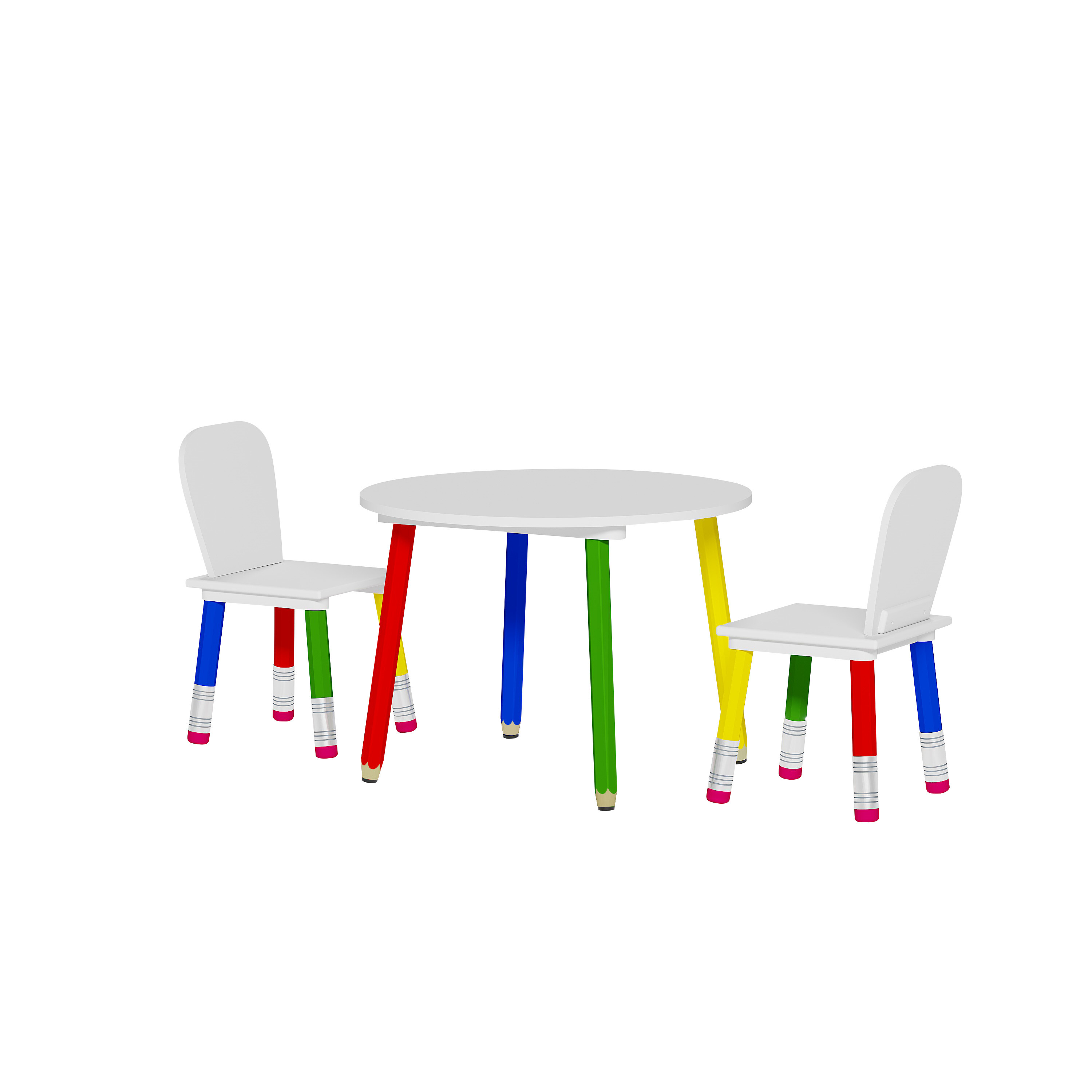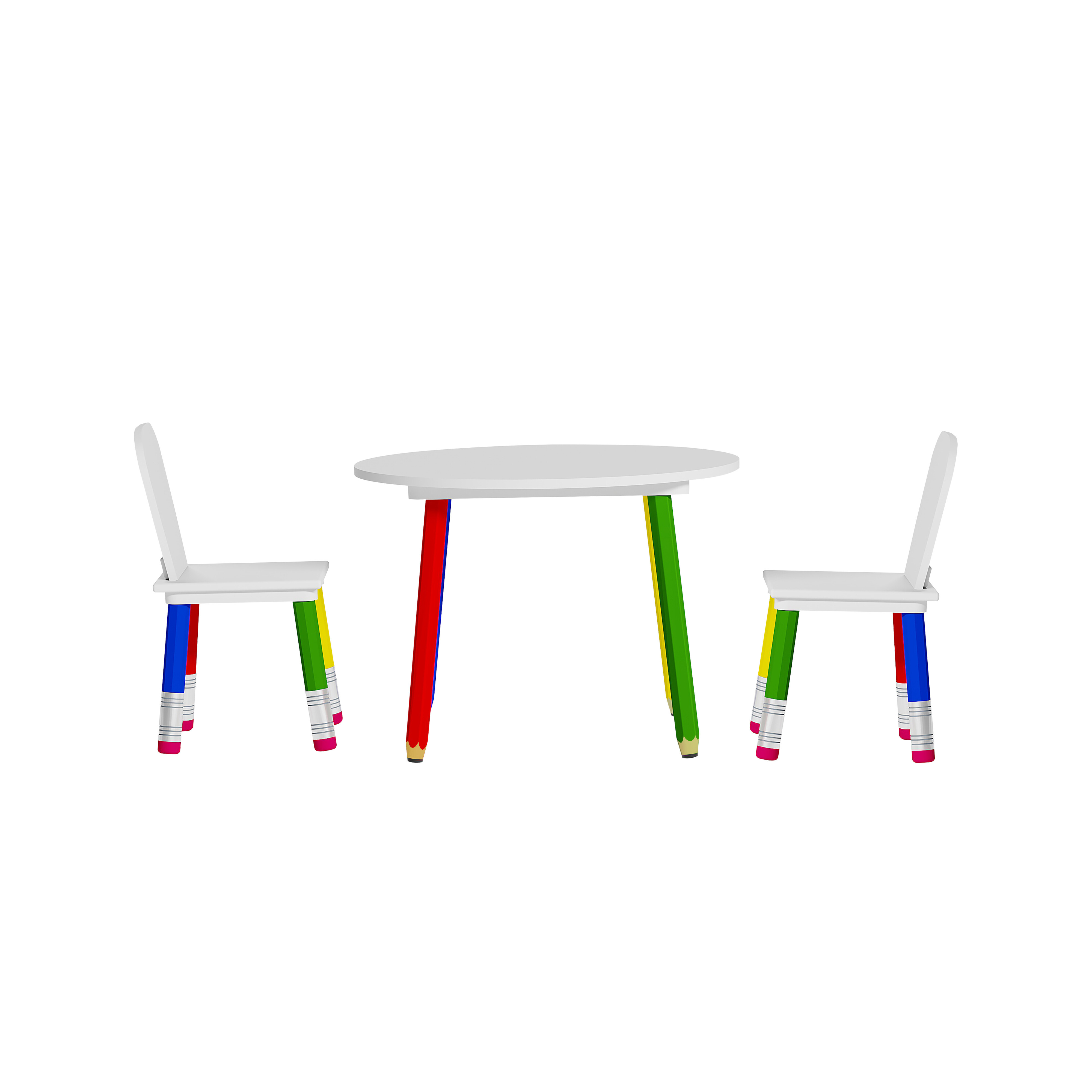 Pořiďte svým dětem tento dětský barevný jídelní set se stolečkem a židličkami. Nohy nábytku připomínají dětské pastelky.