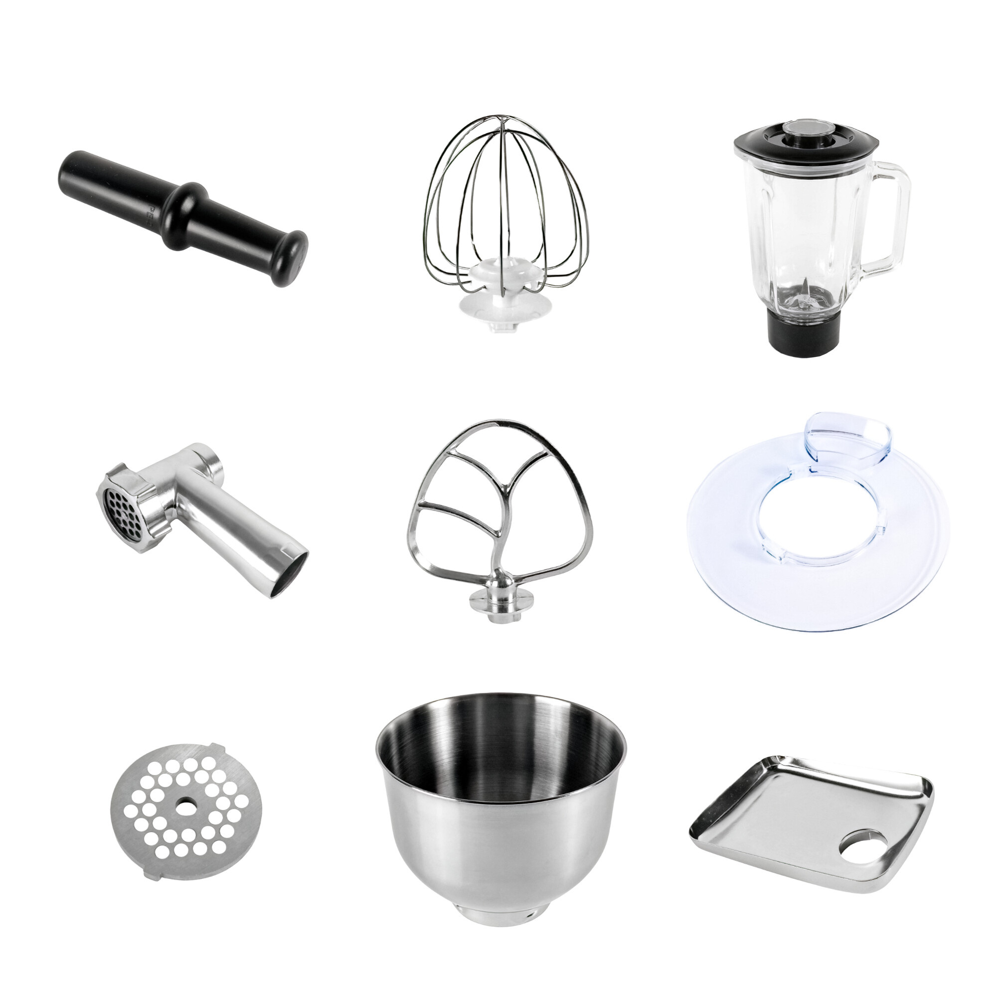 Robot je dodáván s dvěma základními nástavci: šlehací metla, míchací metla. Tyto nástavce lze snadno vyměnit, což vám umožní rychle přejít z jednoho úkolu na druhý. Všechny části, které přicházejí do styku s potravinami, jsou snadno omyvatelné, což zajišťuje rychlé a bezproblémové čištění po každém použití.