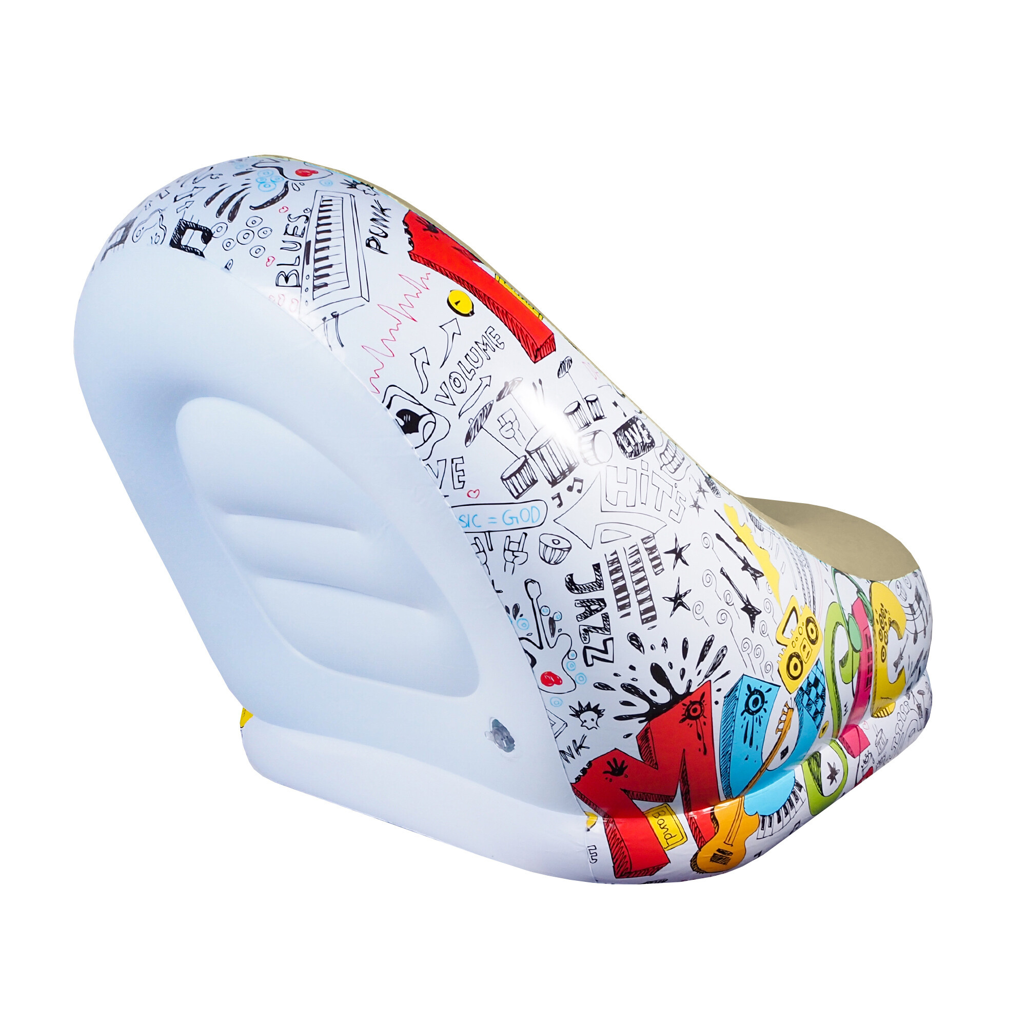 Křeslo se vyznačuje mimořádným pohodlím. Je vyrobeno z pevného a vůči propíchnutí odolného PVC a jeho sedák je potažen měkkou látkou imitující velur.