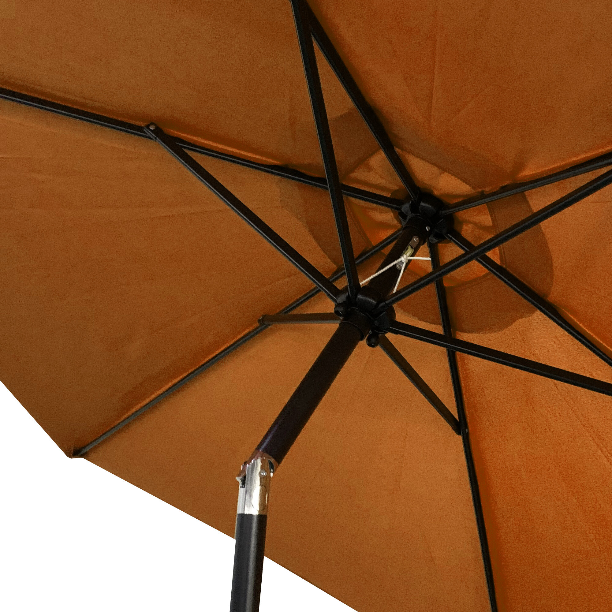 Slunečník je vybaven pevnou ocelovou konstrukcí, která je ošetřena práškovým lakem pro zvýšení odolnosti. Středová tyč o průměru 34 mm a šest pevných žeber zajišťují stabilitu a pevnost.