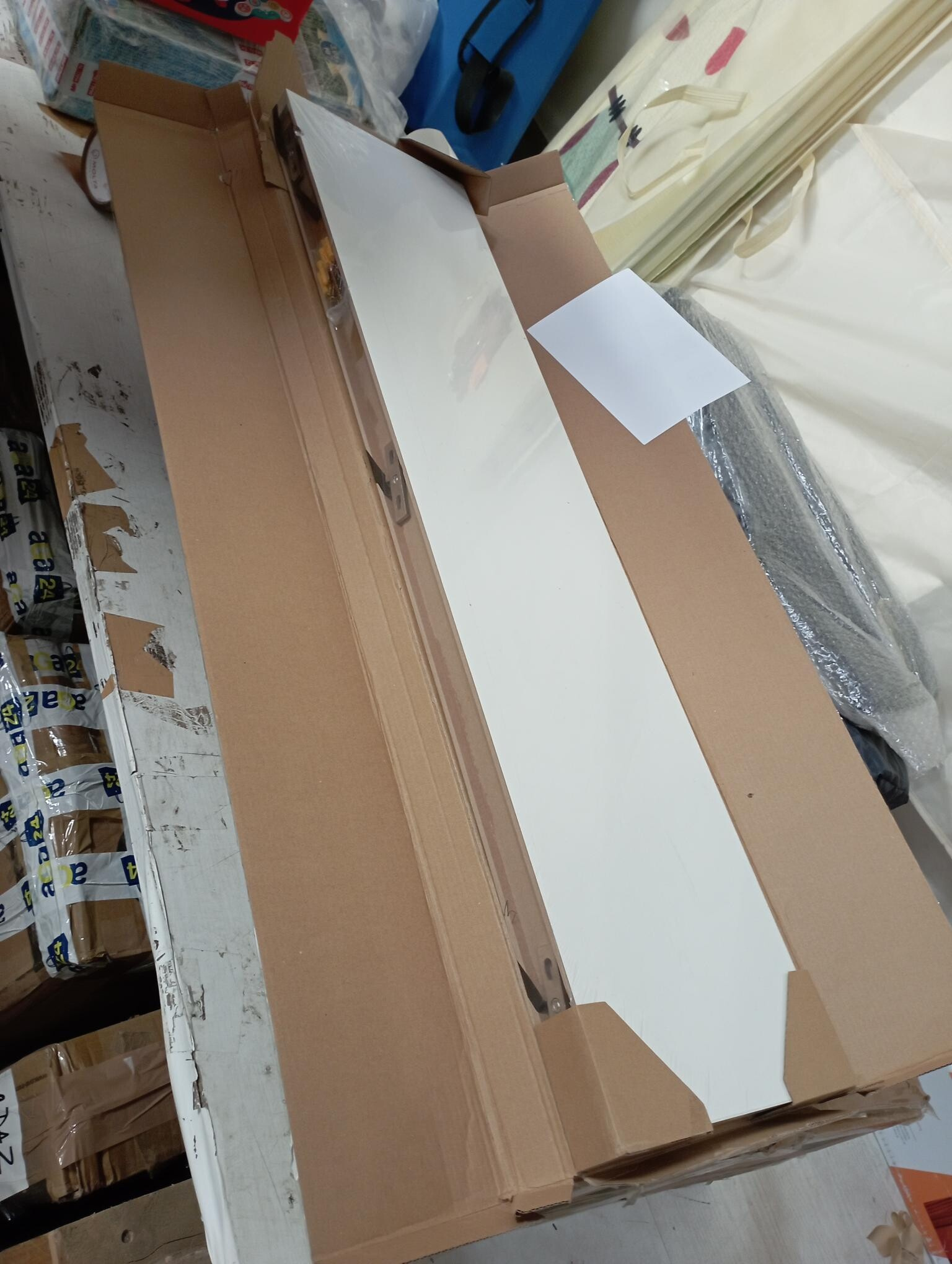 Police je kompletní a plně použitelná. Na jedné straně je však drobně uštípnutá hrana. Vada je pouze estetická a nemá vliv na stabilitu ani nosnost police.