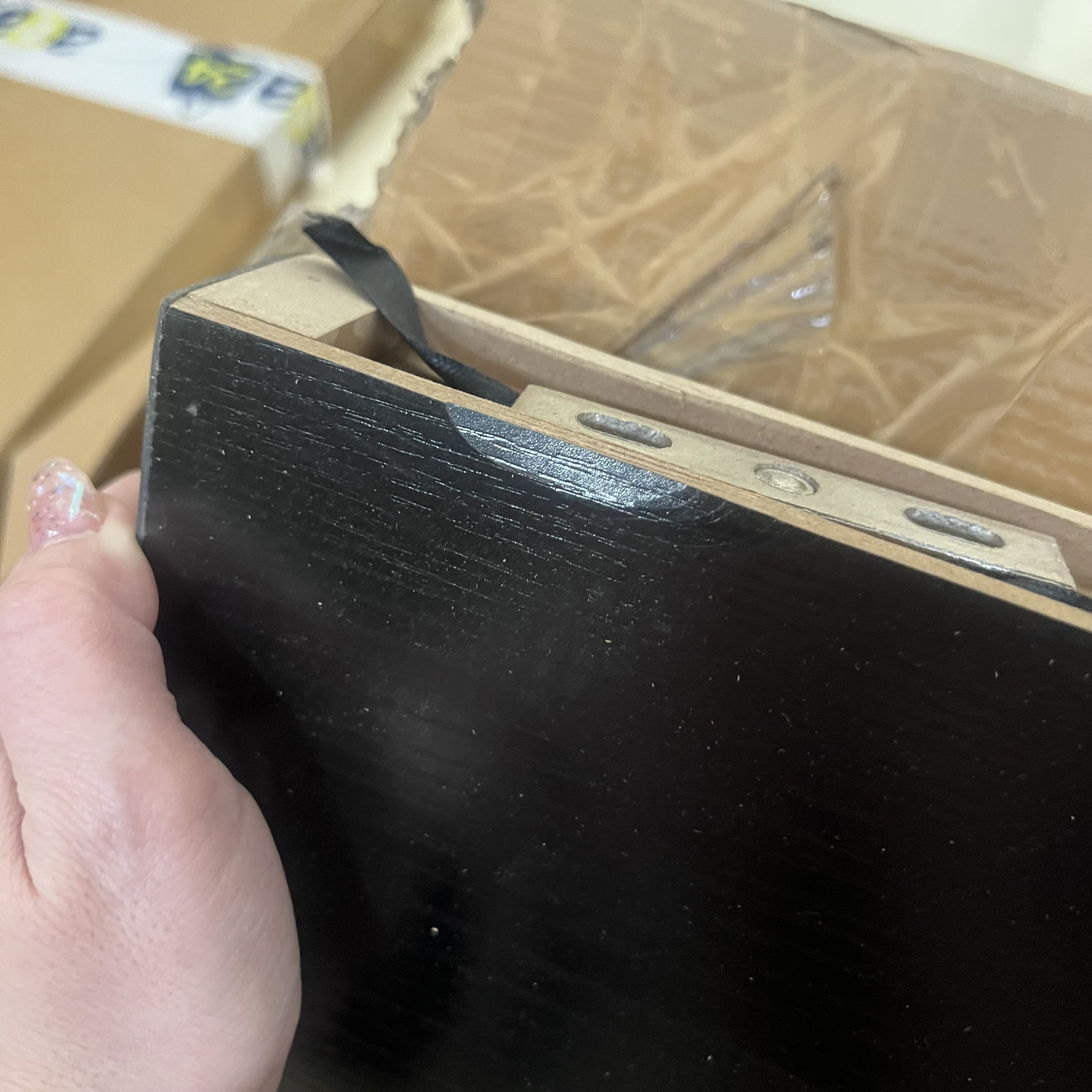 Polička je v rozích a na hranách ulomená a je mírně špinavá.