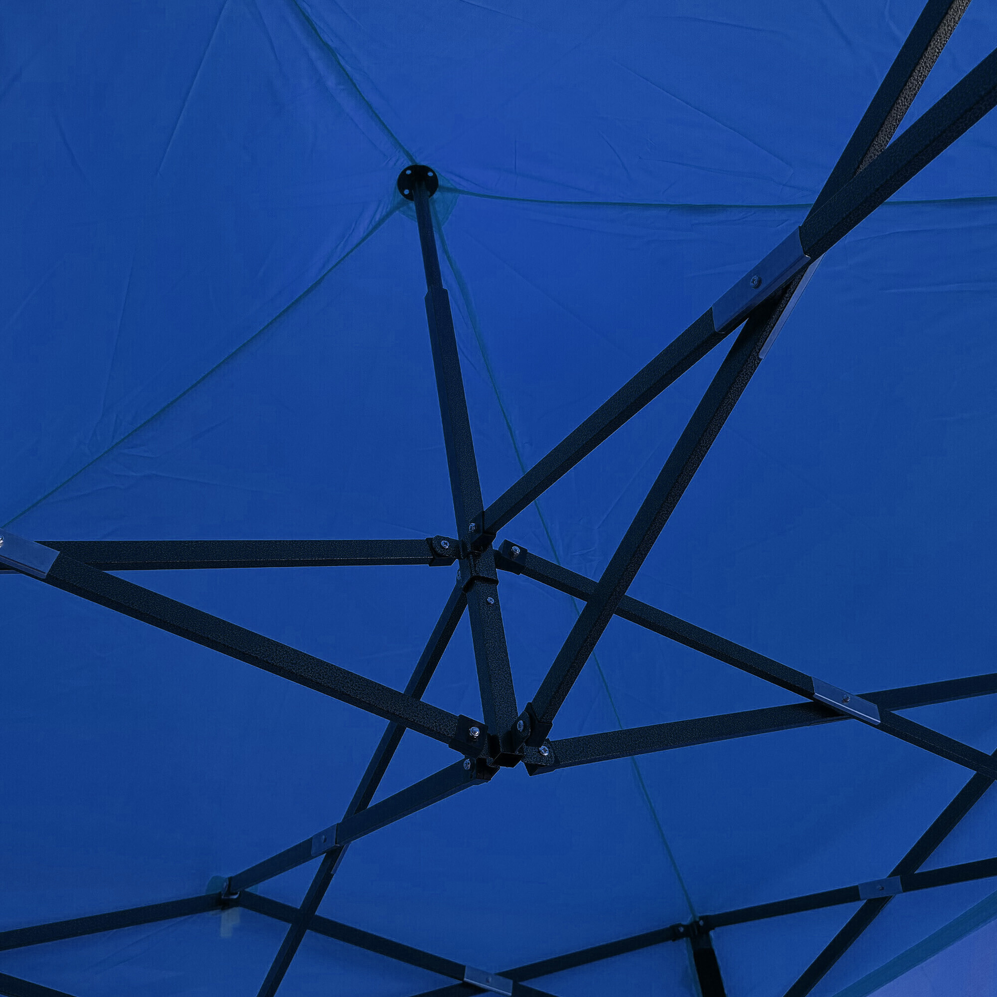 Díky jednoduché nůžkové konstrukci se dá stánek velice rychle postavit i složit (cca 5-10 minut).
