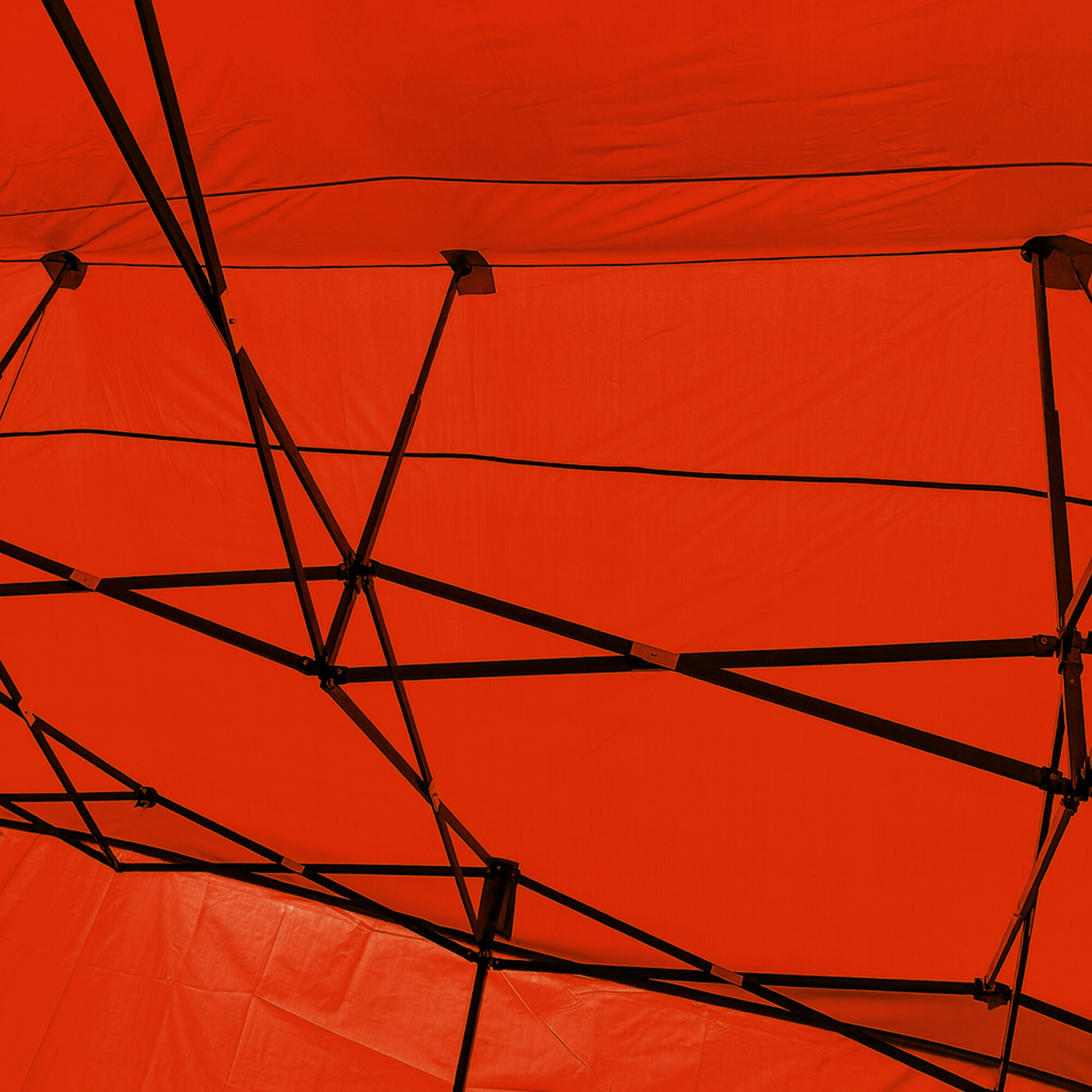 Konstrukce je vyrobena z práškově lakované oceli se šroubovanými spoji, které dodávají stánku stabilitu a pevnost i při častém používání. Patky na nohách umožňují bezpečné ukotvení k povrchu. Součástí provedení je také středová noha, která rovnoměrně rozkládá zatížení konstrukce, zvyšuje stabilitu a snižuje průhyb střechy u velkého rozměru 3×6 m.