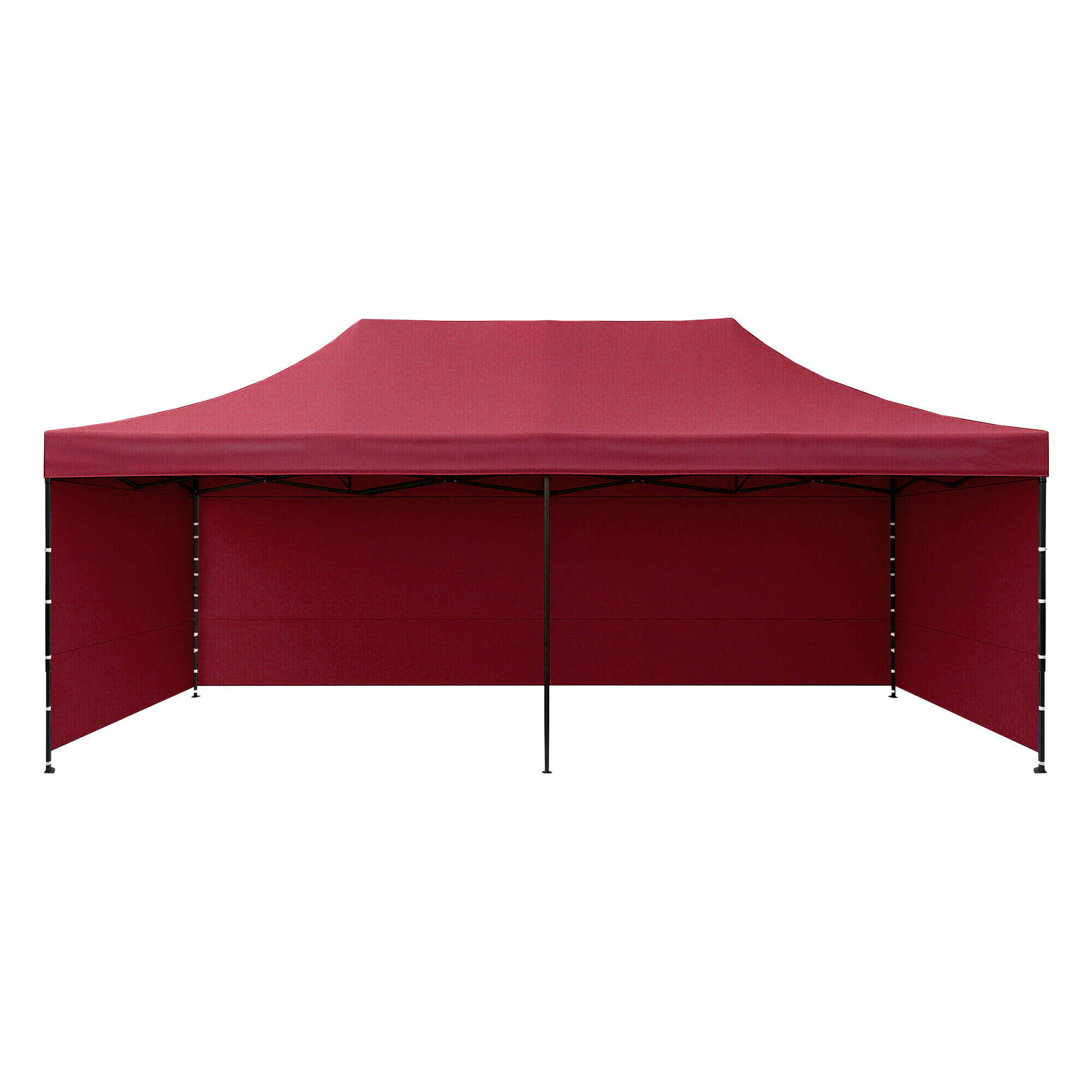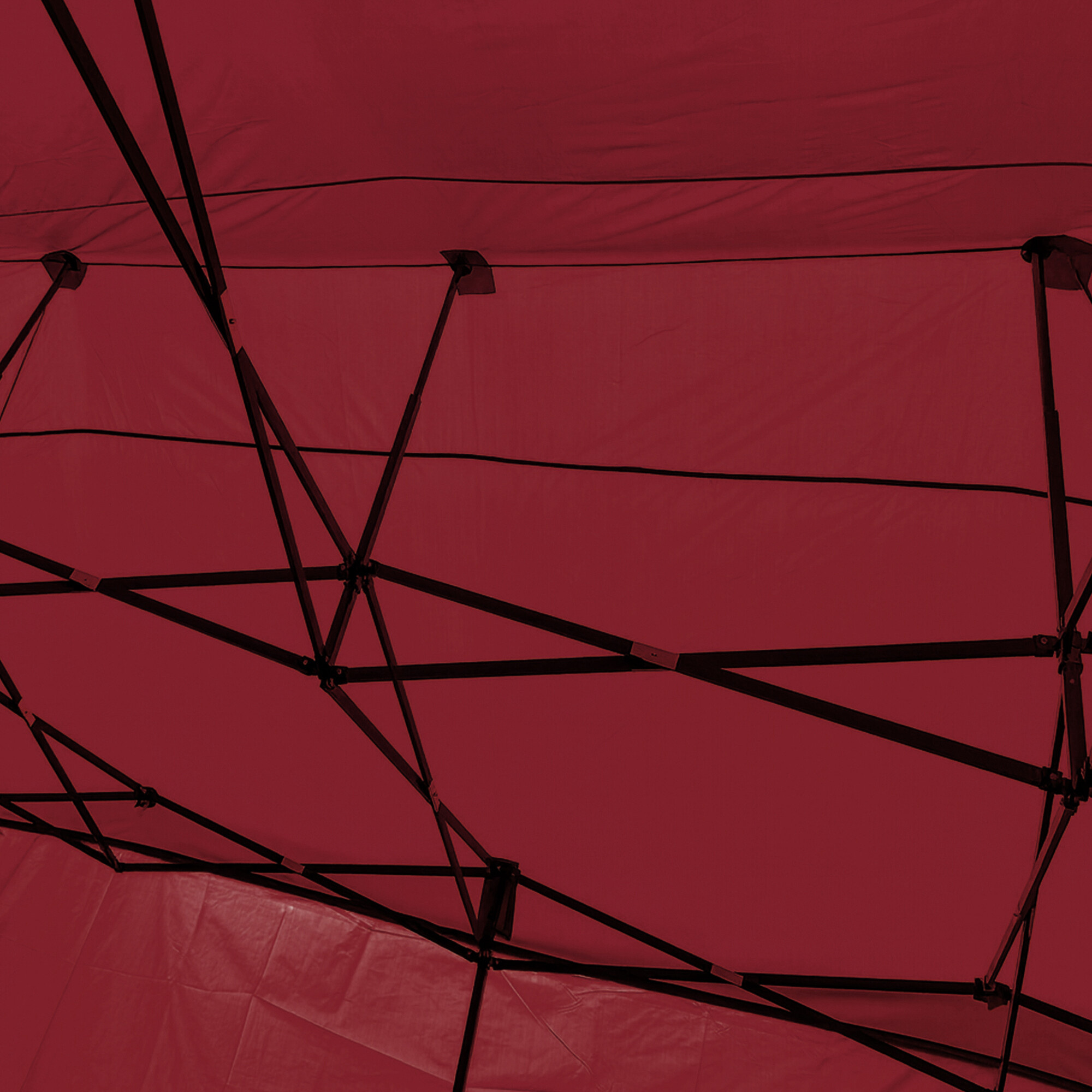 Konstrukce je vyrobena z práškově lakované oceli se šroubovanými spoji, které dodávají stánku stabilitu a pevnost i při častém používání. Patky na nohách umožňují bezpečné ukotvení k povrchu. Součástí provedení je také středová noha, která rovnoměrně rozkládá zatížení konstrukce, zvyšuje stabilitu a snižuje průhyb střechy u velkého rozměru 3×6 m.