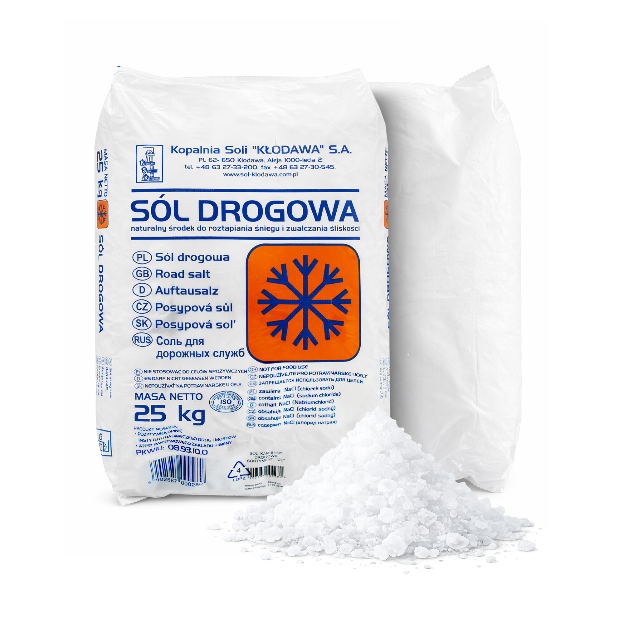 Tato zimní posypová sůl 25 kg je určena výhradně k technickému použití. Není vhodná pro potravinářské ani krmné účely.