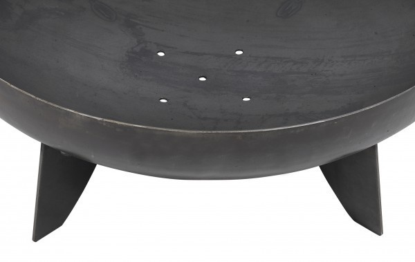 Kulaté ohniště s průměrem 50 cm a hloubce mísy 13 cm je vyrobeno z masivní oceli o tloušťce cca 2,5 mm.