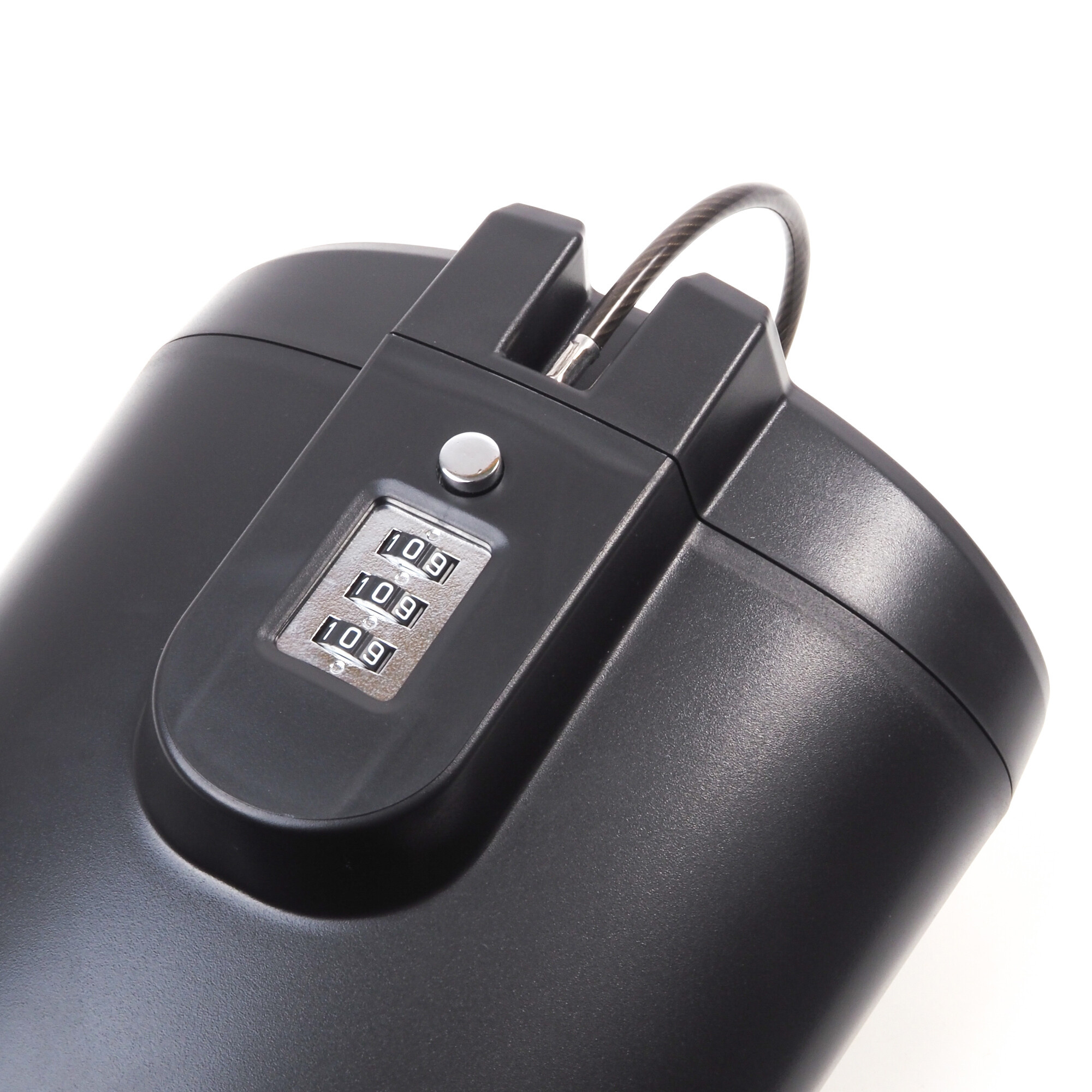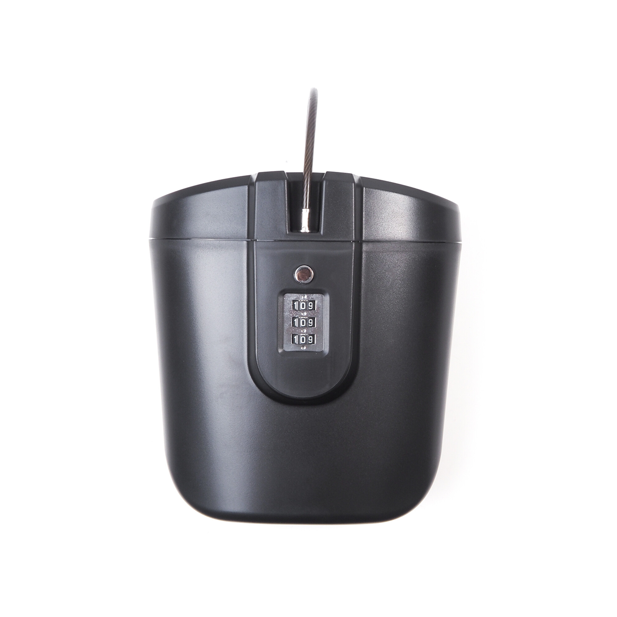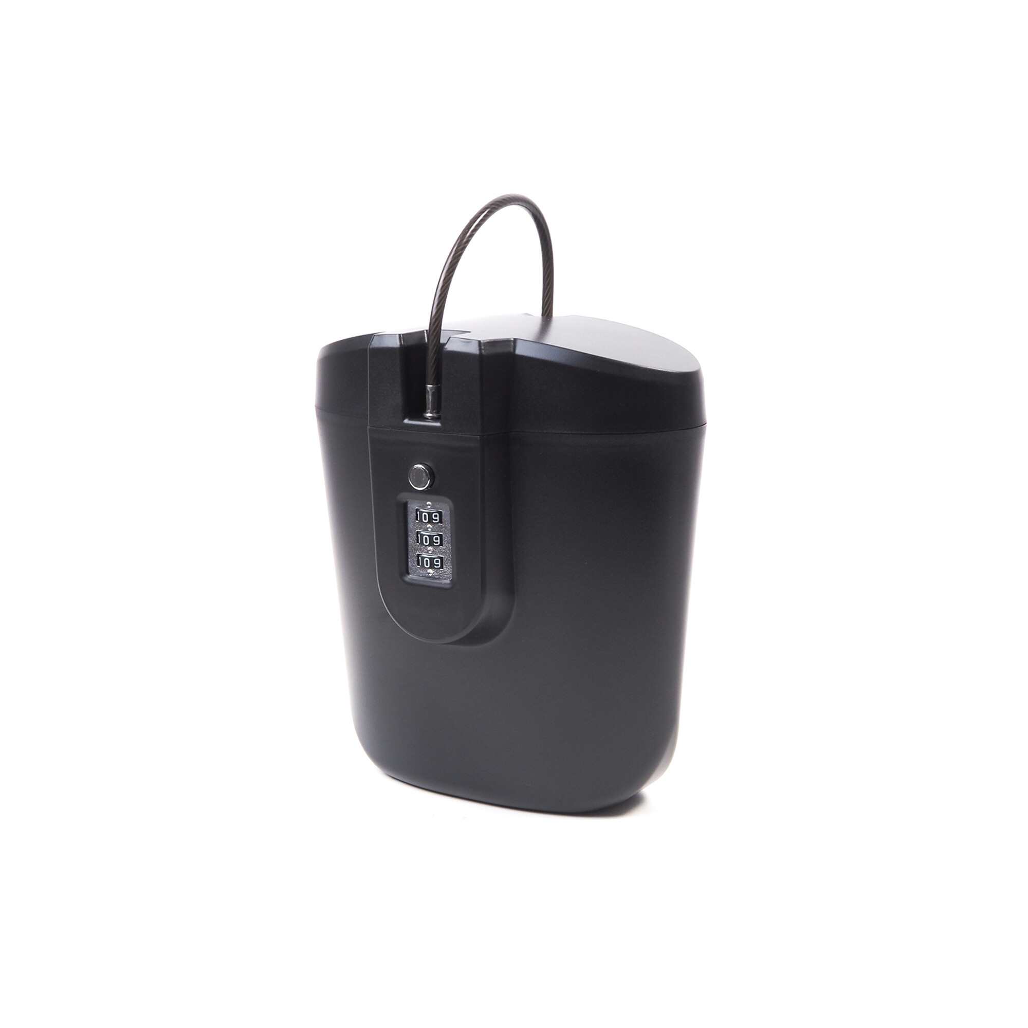 Bezpečnostní box je vybaven ocelovým lankem o délce 37 cm a průměru přibližně 5 mm, které umožňuje jeho připevnění k pevnému nebo těžkému předmětu. Tímto způsobem je zajištěn proti neoprávněnému přístupu a krádeži. Lanko je uzavíráno kombinačním zámkem, který pracuje s individuálně volitelnou kombinací, což zajišťuje, že pouze vy budete mít přístup k obsahu boxu.