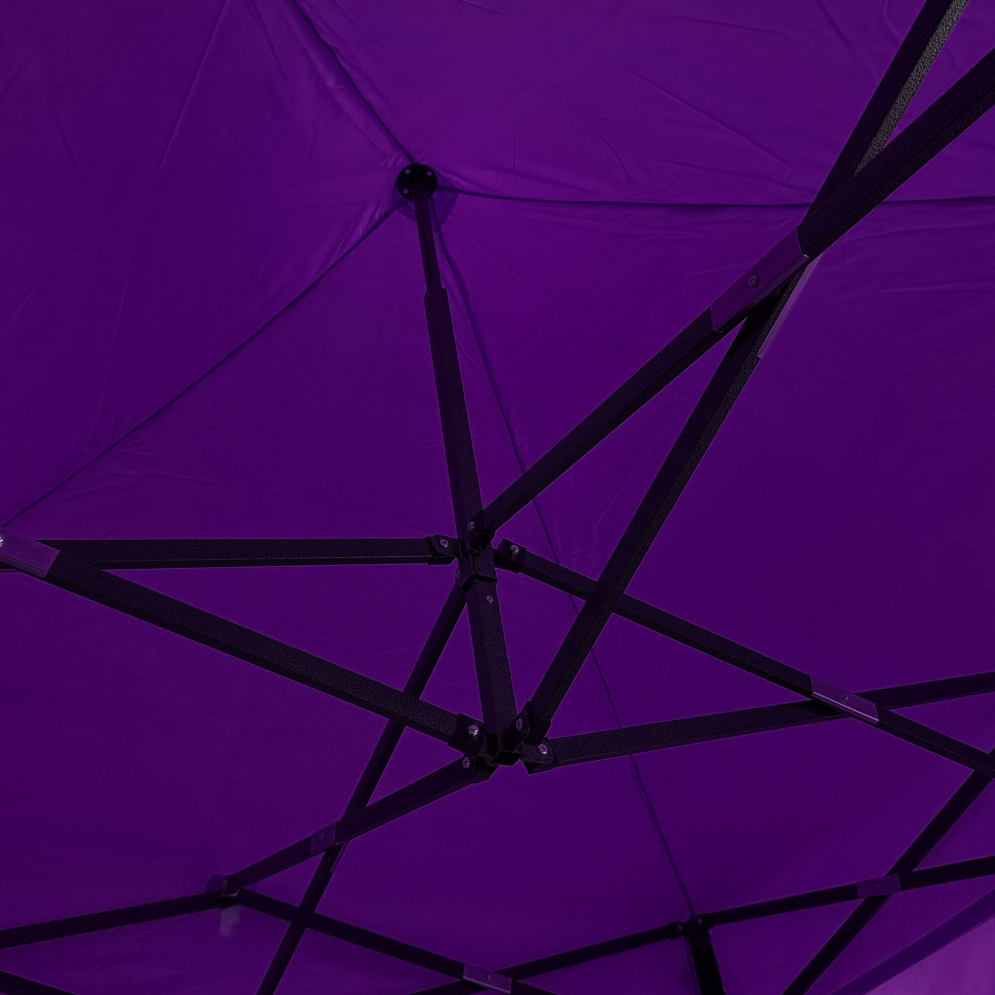 Konstrukci tvoří ocelový rám s nůžkovým mechanismem, který je povrchově chráněn práškovým lakem proti korozi. Oproti běžným skládacím stanům má tento model šroubované spoje, což zvyšuje pevnost, prodlužuje životnost a usnadňuje případný servis nebo výměnu dílů. Díky třem stupňům regulace lze výšku nastavit od 213 cm až do 290 cm, takže stánek snadno přizpůsobíte konkrétním podmínkám.