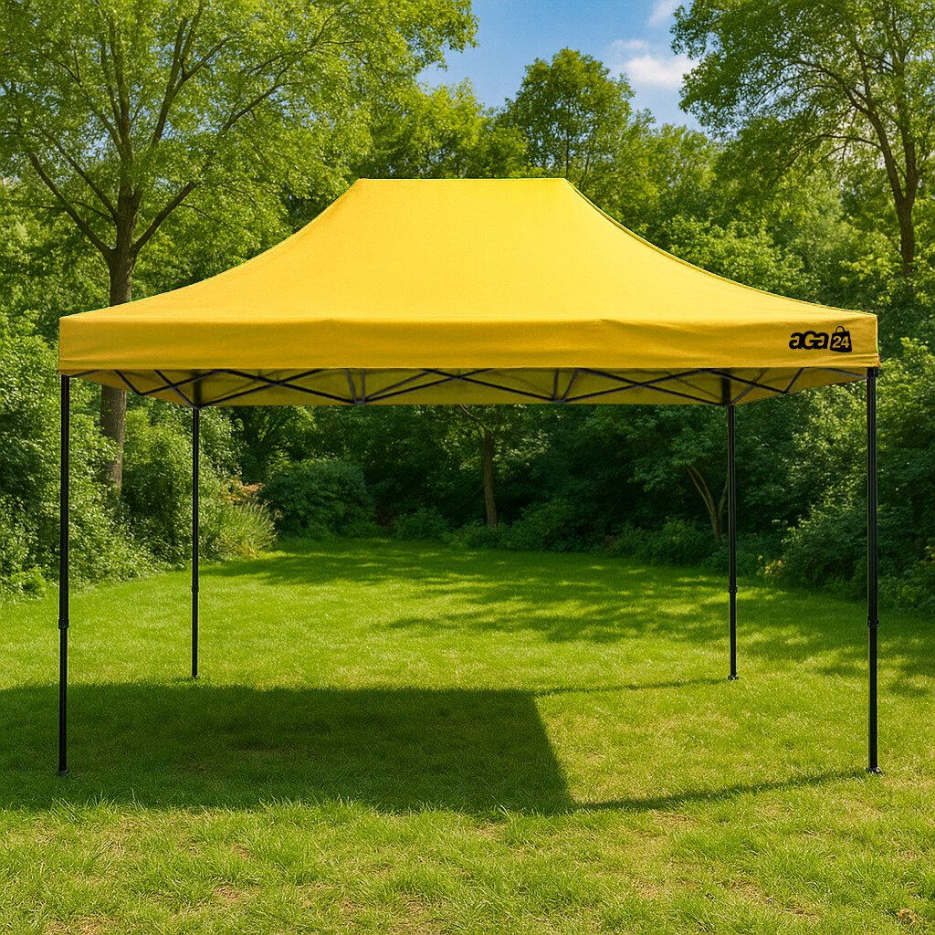 Prodejní stánek 3×4,5 m bez bočnic nabízí více prostoru pro vystavení zboží i pohodlnou obsluhu zákazníků. Otevřená konstrukce zajišťuje volný přístup ze všech stran, což oceníte na trzích, veletrzích, reklamních akcích i při venkovních slavnostech. Ve srovnání s menším stánkem 3×3 m poskytuje větší plochu, přesto zůstává snadno přenosný a rychle sestavitelný.