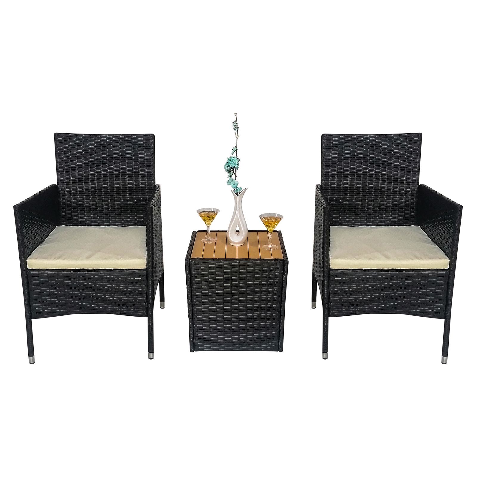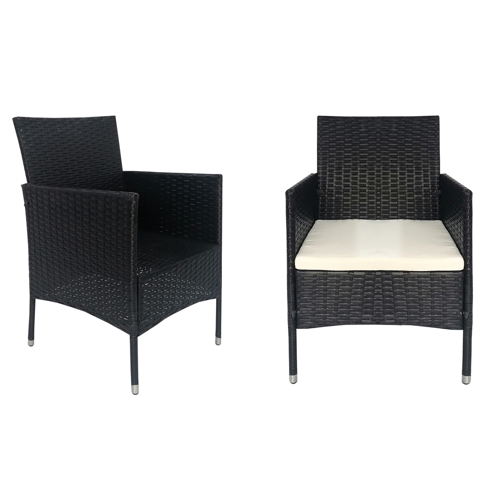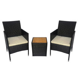 Dvě křesla a stoleček s pevnou ocelovou konstrukcí a polyratanovým výpletem jsou ideální pro venkovní prostory, jako jsou zahrady, terasy a balkóny, také se hodí i do interiéru zimních zahrad.