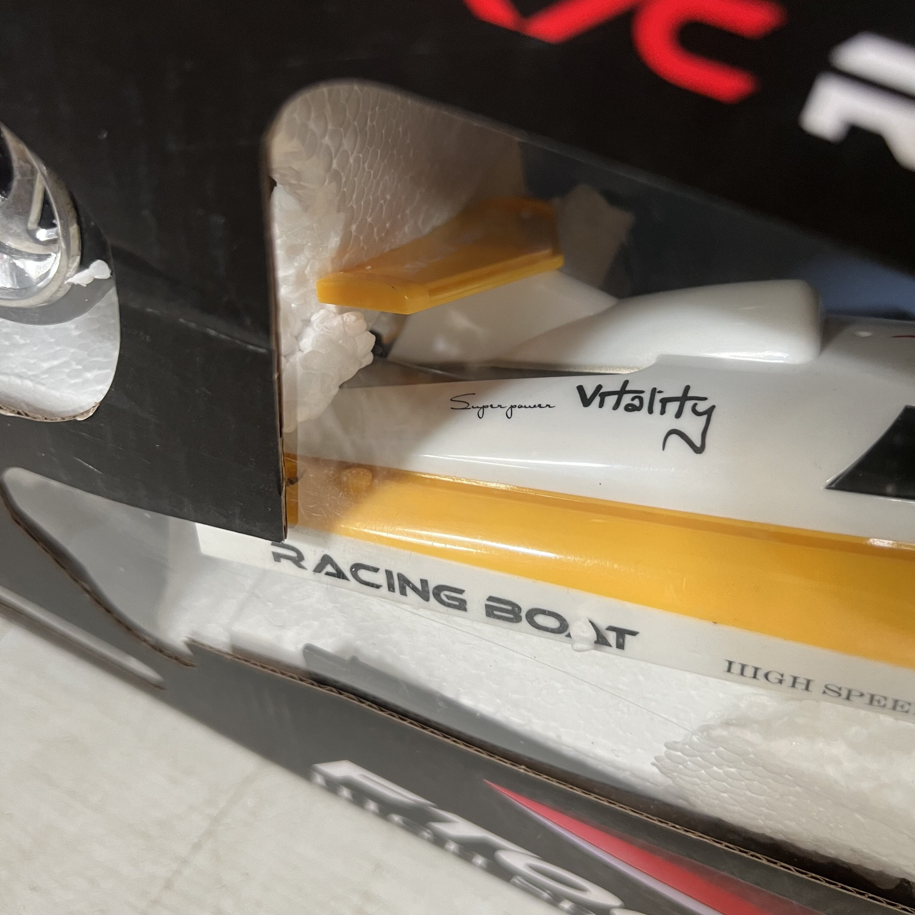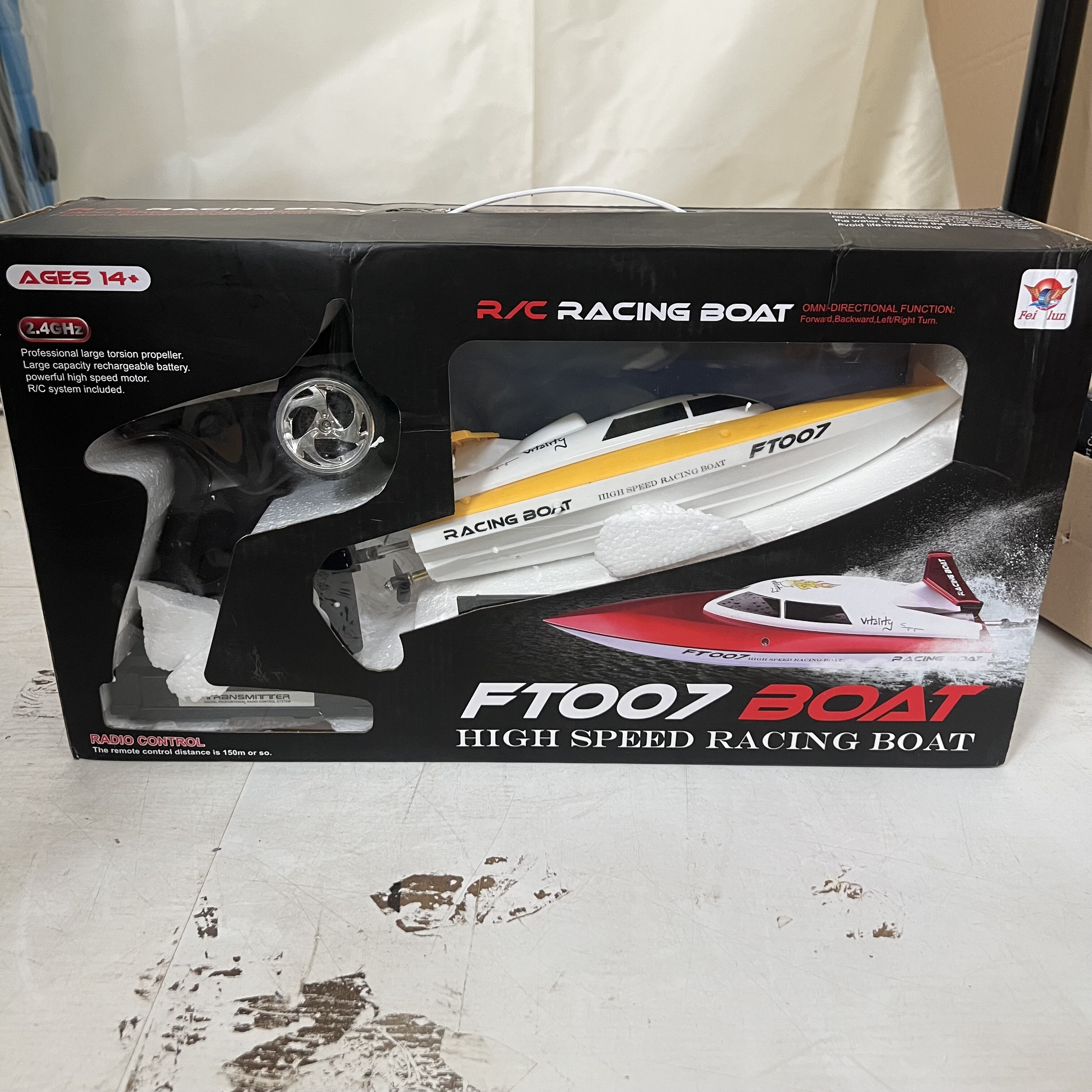 Motorový člun je vyroben z odolných materiálů s kovovými prvky v převodovce. Loď je řízena dvoukanálovým, plně proporcionálních vysílačem na frekvenci 2,4Ghz, nebude tedy problém pořádat závody! Se silným motorem člun ujede až 5,5m za sekundu. Kromě toho má rádio akcelerační a otáčivý trimmer, který je v této třídě neobvyklý.