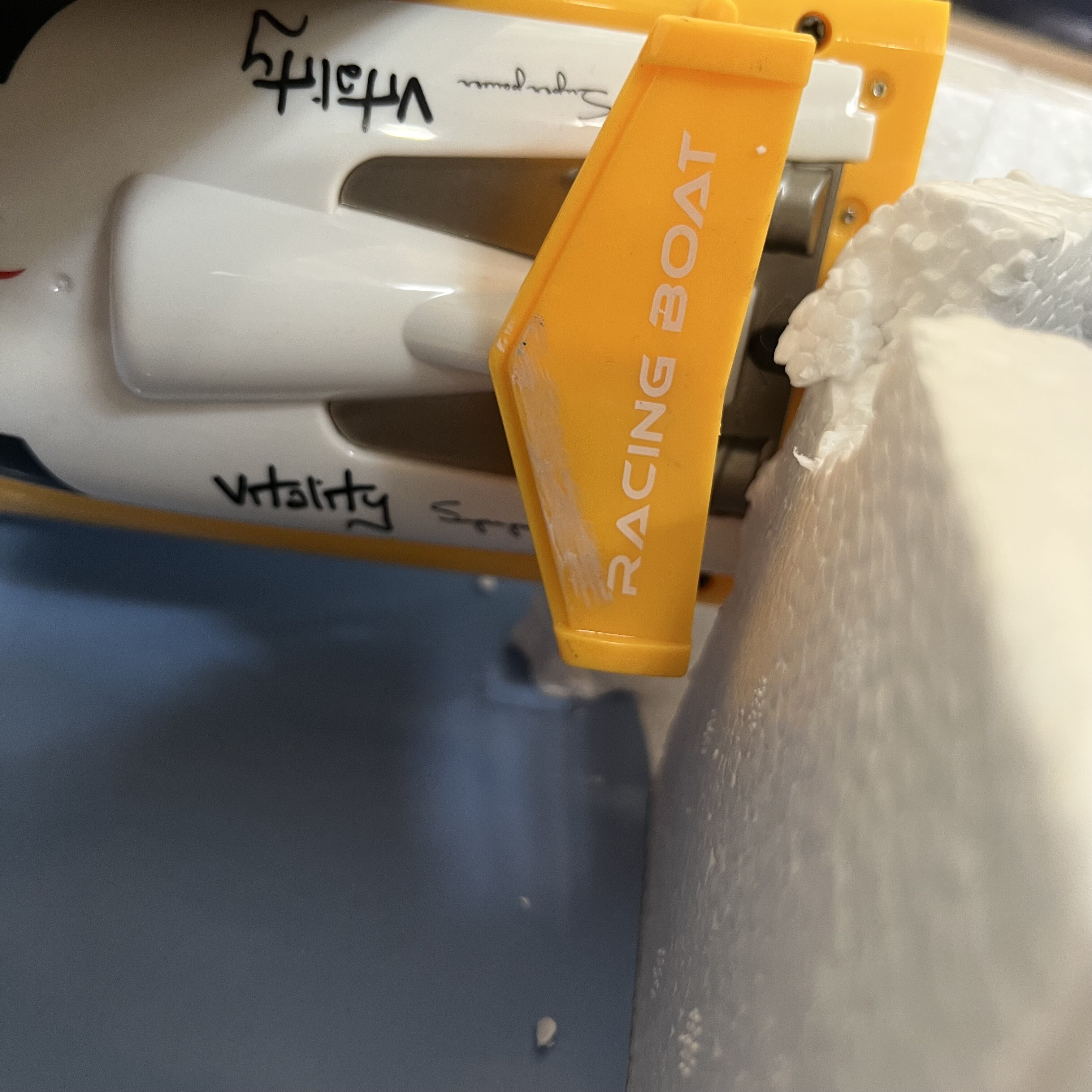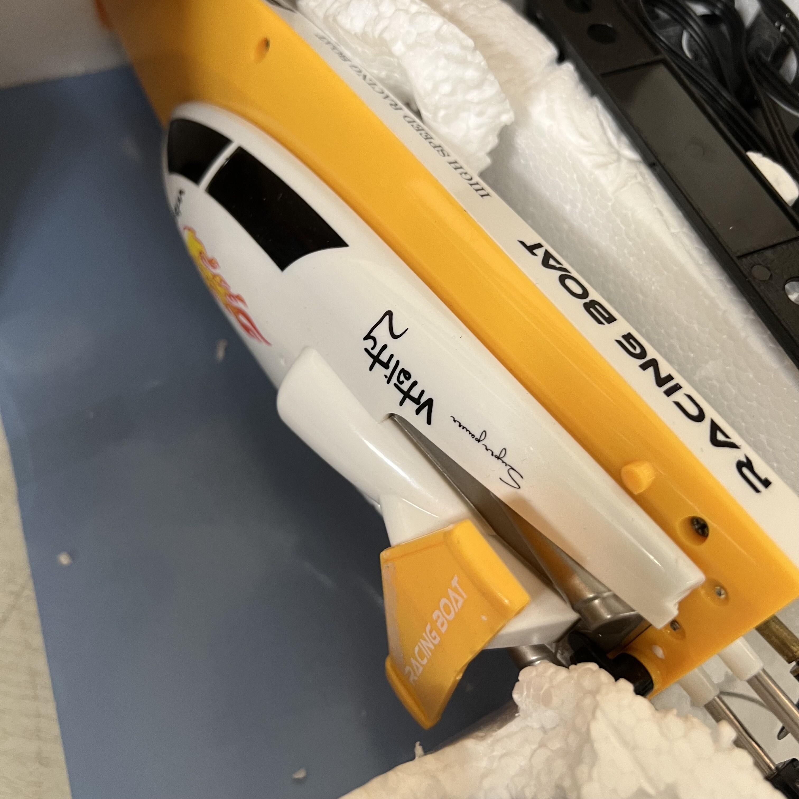 Veškerá elektronika je uzavřena ve vodotěsném kufru. Motorový člun je vybaven 7,4V baterií o kapacitě 700mAh, která umožňuje zábavu po dobu asi 10 minut v závislosti na zatížení motoru. Doba nabíjení je cca 60 minut.