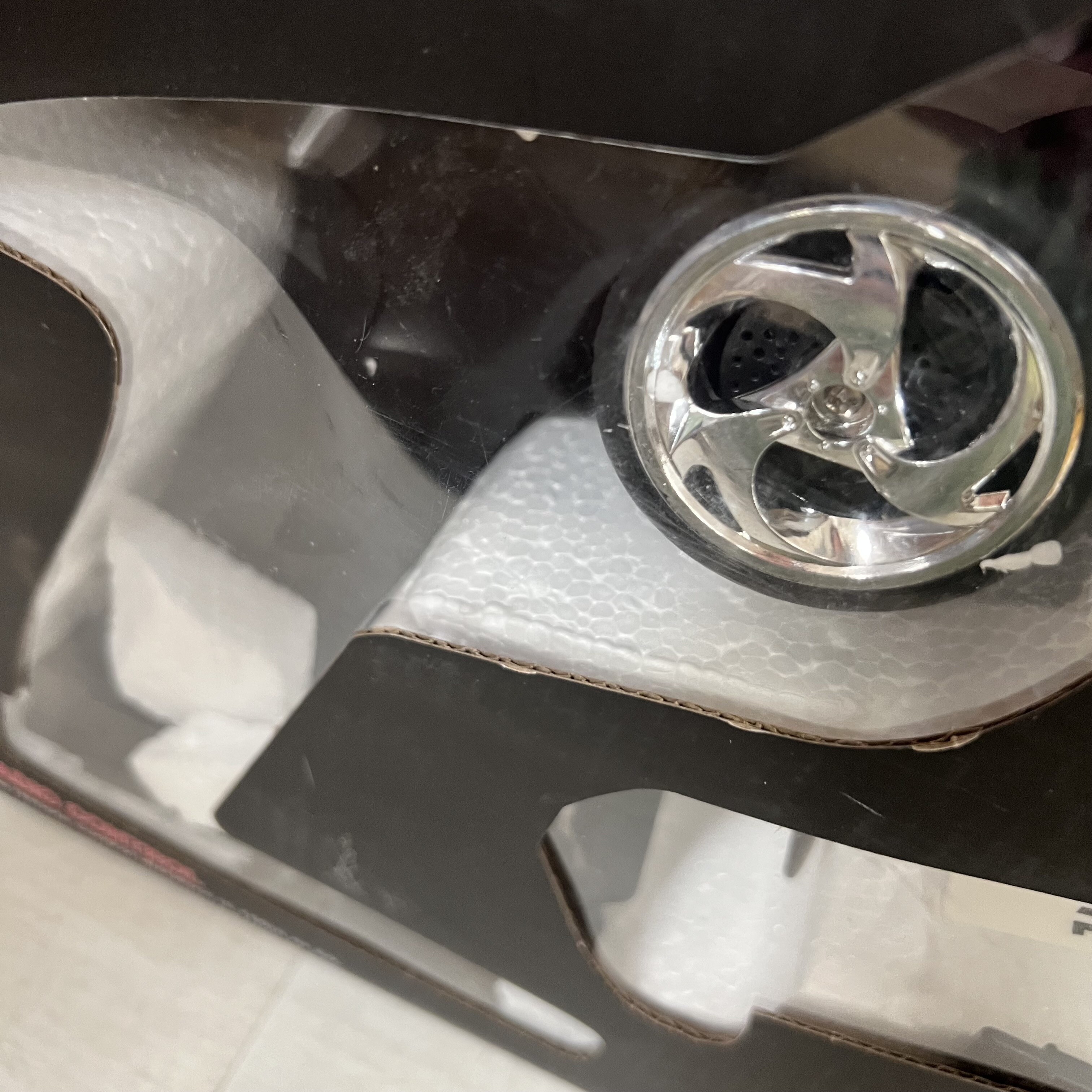 Poškozený obal, loď mírně zašpiněná od lepicí pásky.