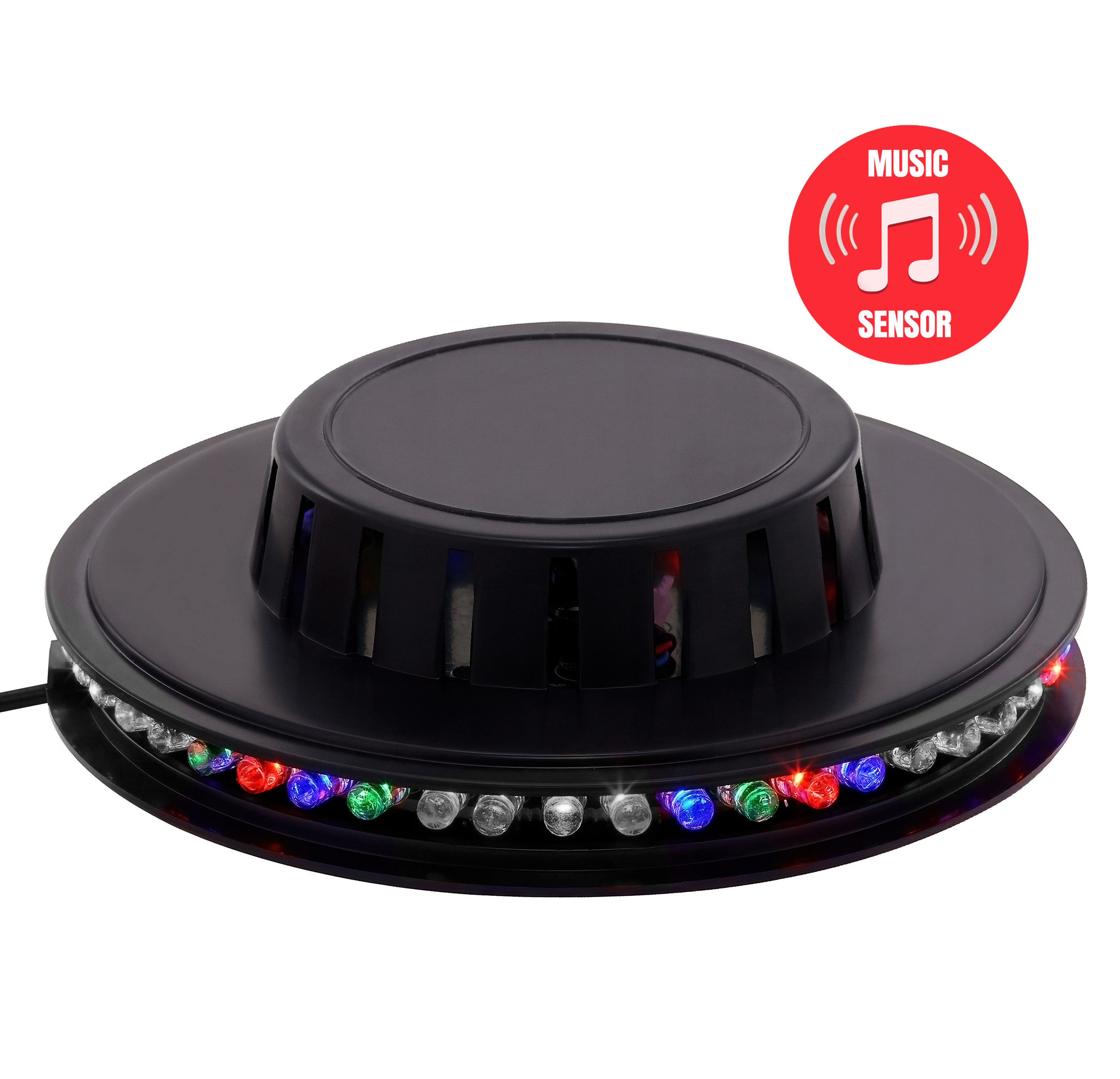 Vestavěný senzor reaguje na hudbu, takže si doma můžete vytvořit skutečnou atmosféru večírku! Pomocí 48 LED diod vytváří nezaměnitelné světelné efekty.